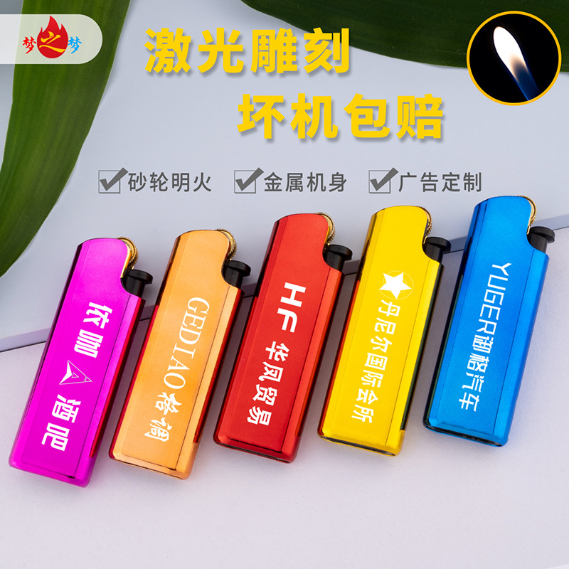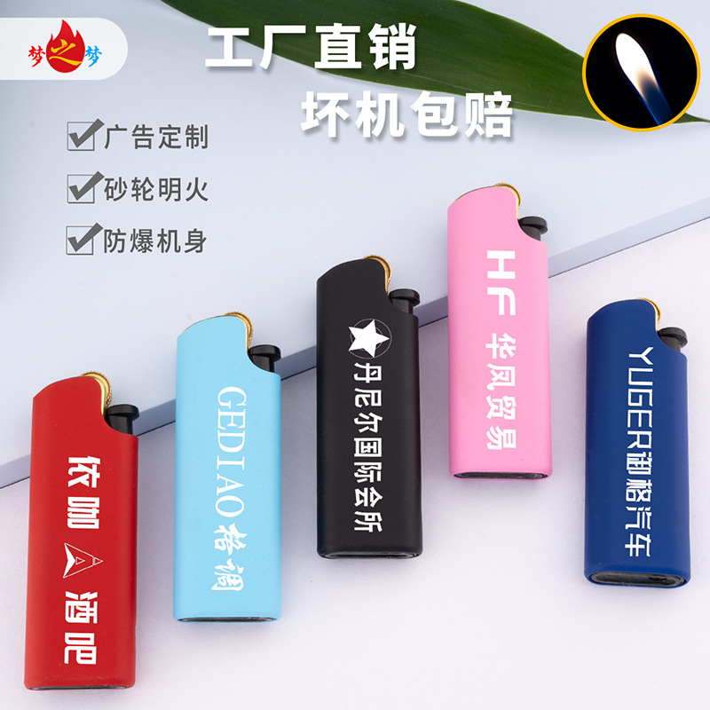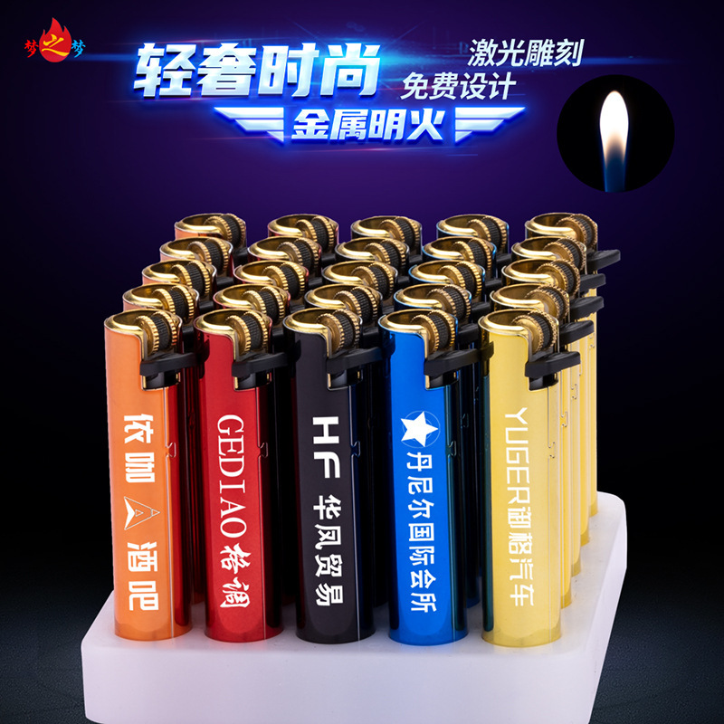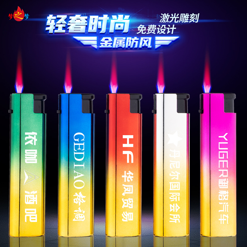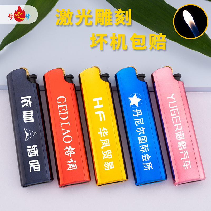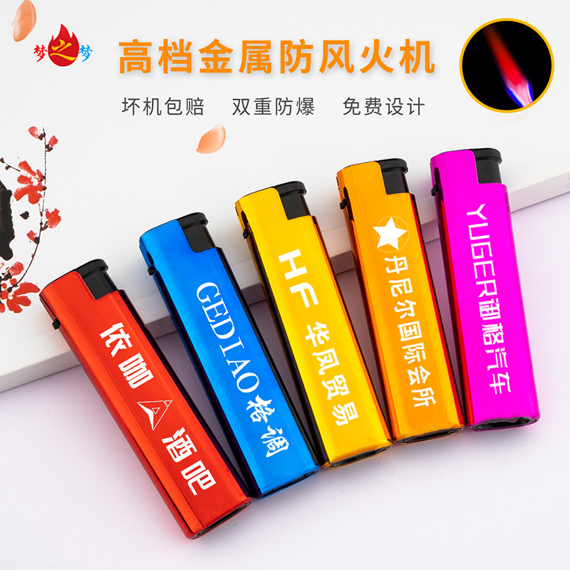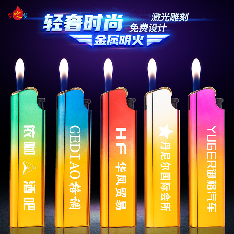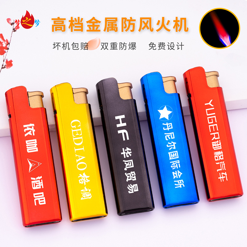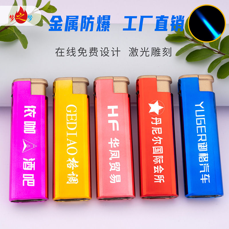 Wholesale metal inflatable windproof advertising lighters, supermarkets, direct charging blue flame disposable open flame lighters, wholesale