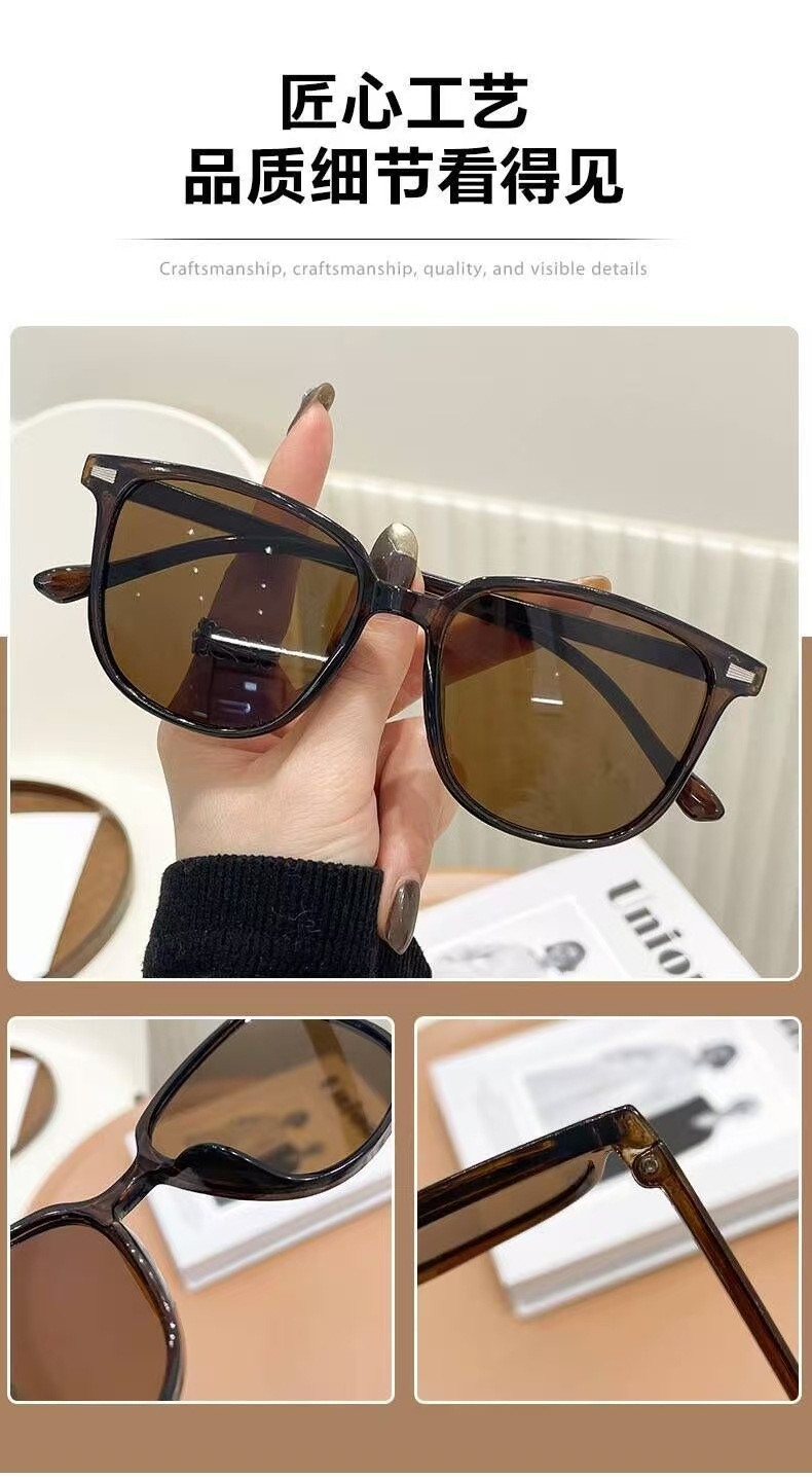 Couple's retro internet celebrity square frame plain sunglasses for women, black frame brown sunglasses for men, trendy