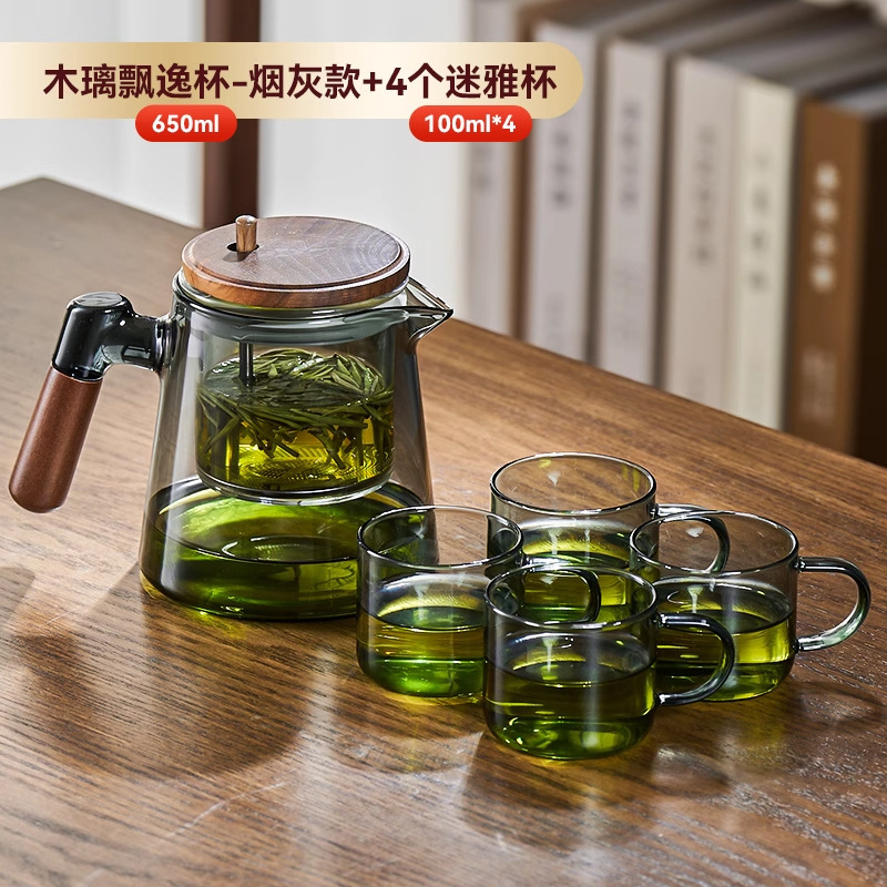 New Elegant Cup Home Office High Temperature Resistant Glass Teapot Press One Button Tea Separation Cup Tea Set