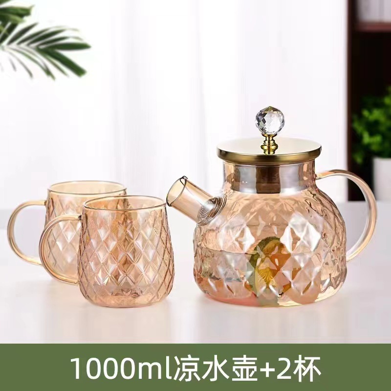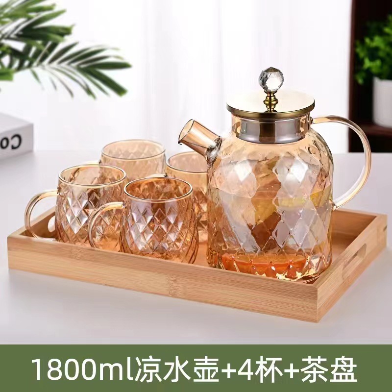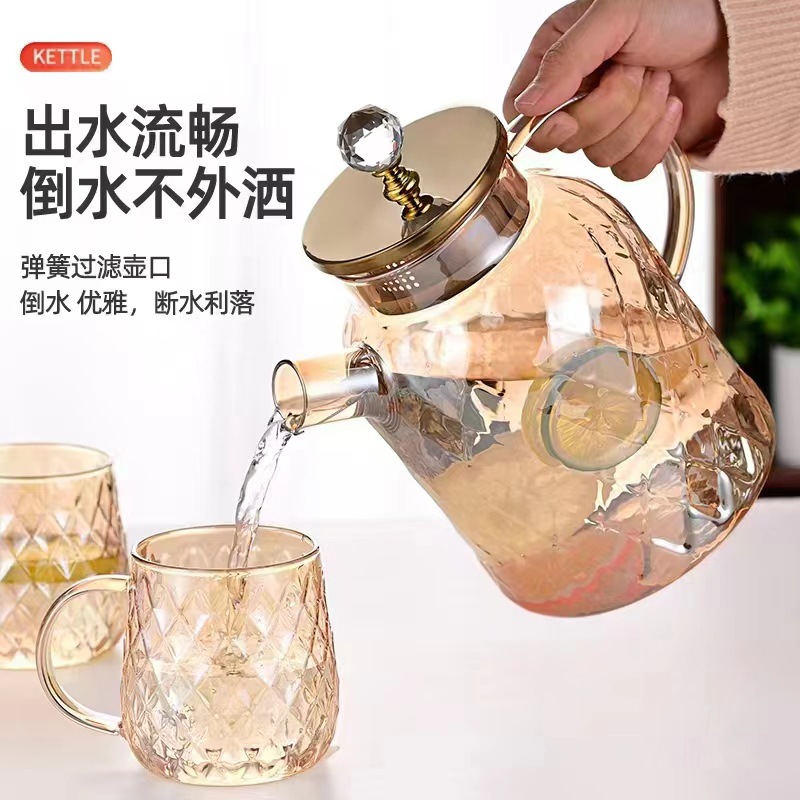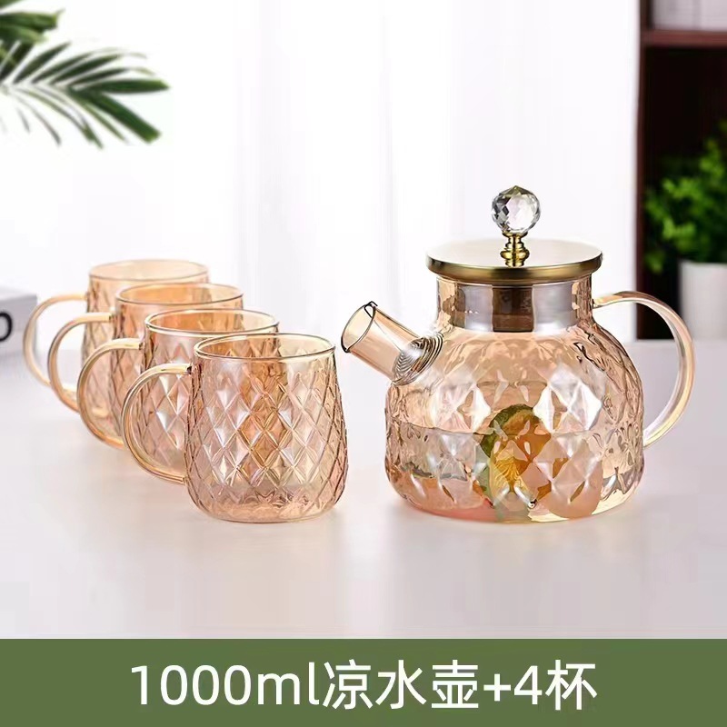 Cold water teapot, tea set, heat-resistant teapot, glass cup set, household living room, large capacity flower tea, fruit tea wholesale