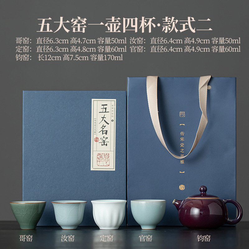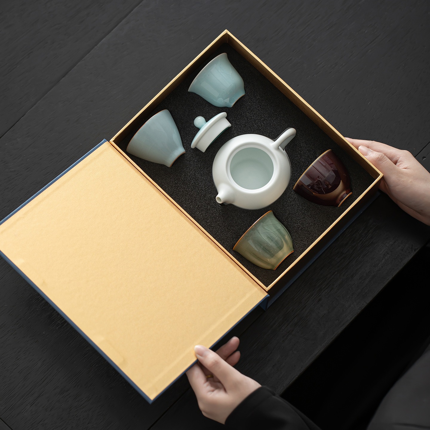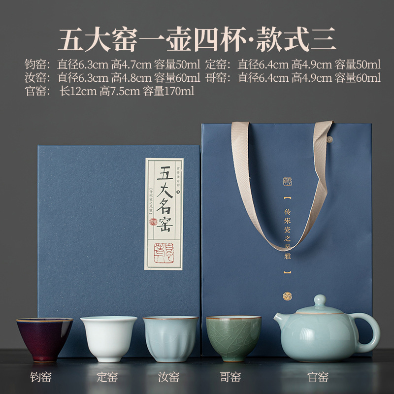 故宫文创五大名窑陶瓷汝窑西施壶一壶四杯商务酒店送老师功夫茶具