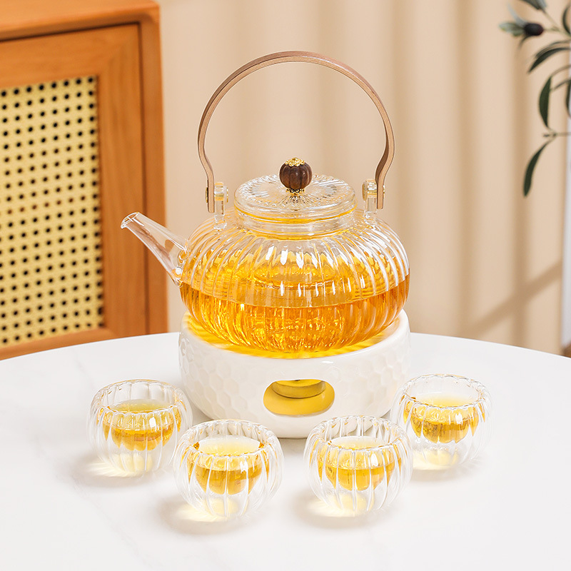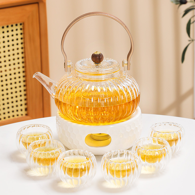 Свечи подогреваются, чайник, набор стеклянных фруктов, чайник, салон красоты, заваривание цветов, чай, стеклянная чашка