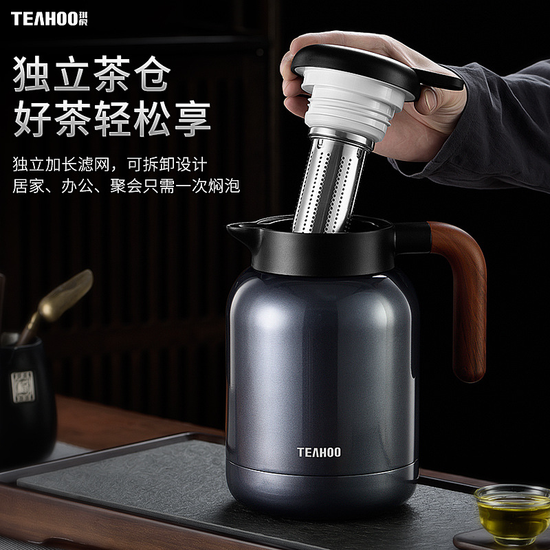 316 stainless steel insulated teapot with large capacity for home and office use, simple coffee pot, tea separation, and steeping teapot