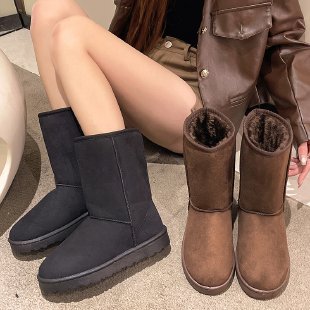 雪地靴女鞋2023秋冬男女同款加绒加厚大中筒绒面高帮长筒棉靴子