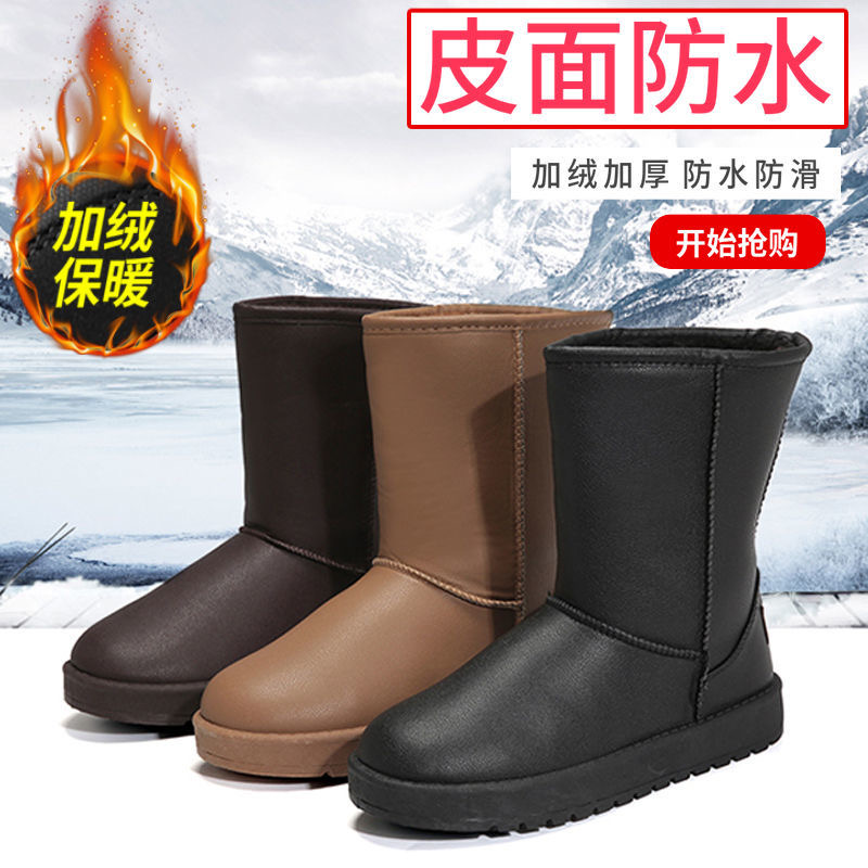 Теплые и противоскользящие сапоги женские сапоги кожа корейская зимняя обувь