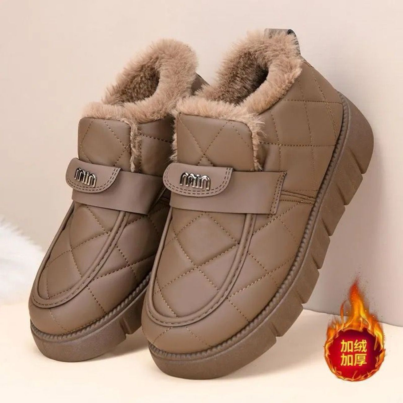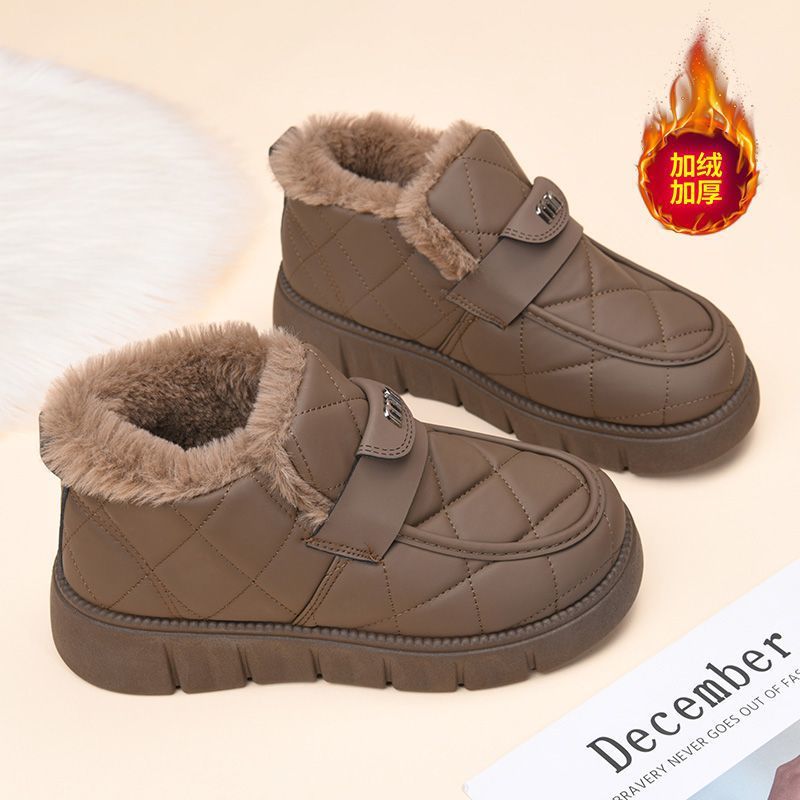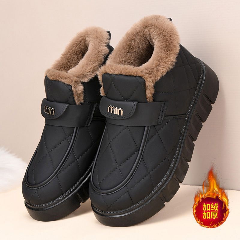 Velvet warm and anti slip fashionable lamb fur faux leather snow boots 2025 winter sponge cake thick soled women's boots