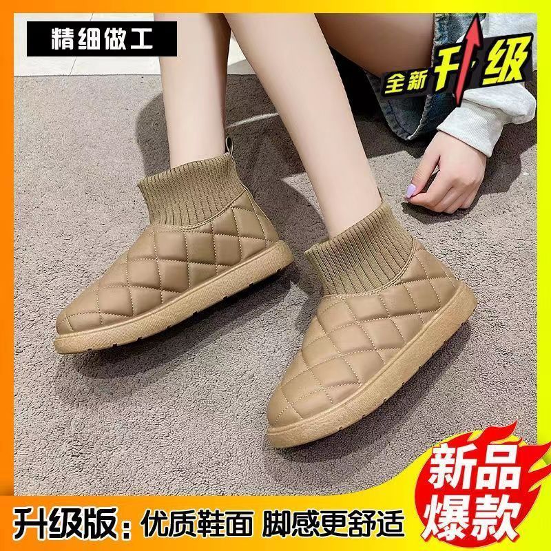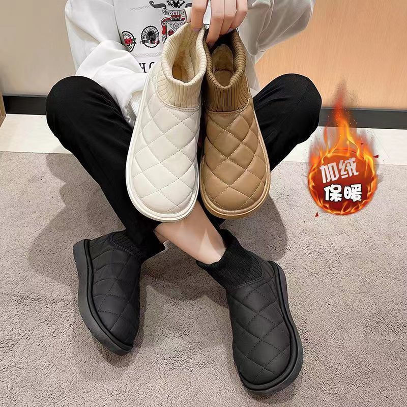 Snow boots for women, 2024 new fashionable thick soled winter with plush and thick bread shoes, waterproof, anti slip, warm cotton boots