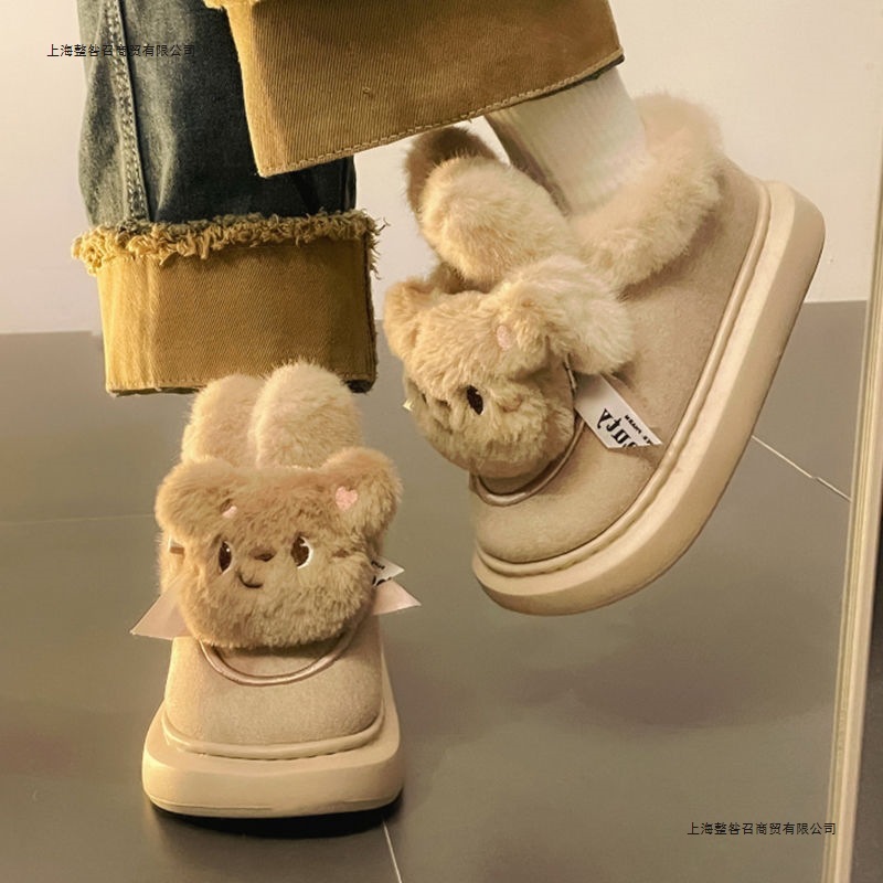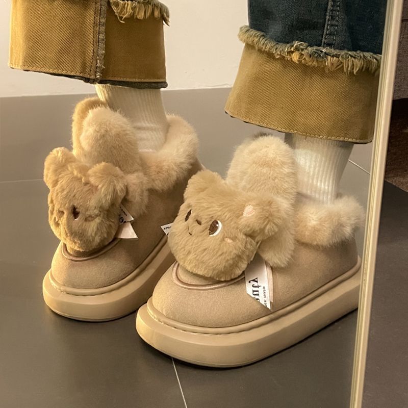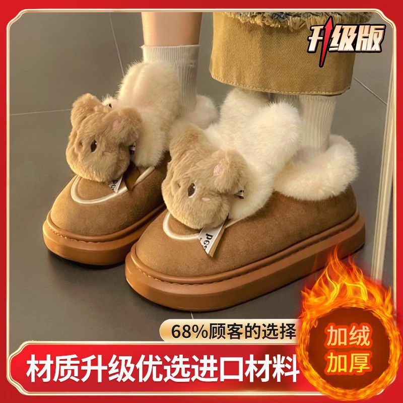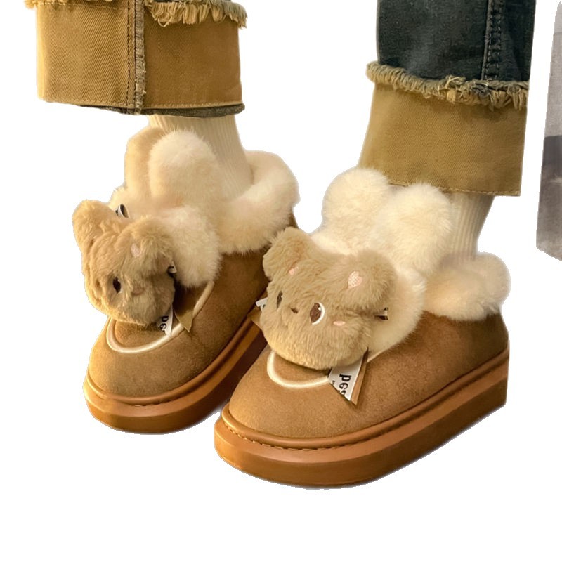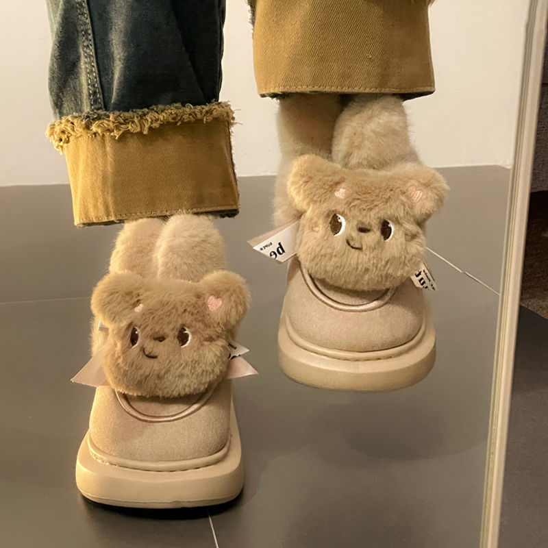 Women's winter cute short boots with thick velvet and thick cotton soles, Maillard cotton boots, warm and anti slip snow boots, cotton shoes