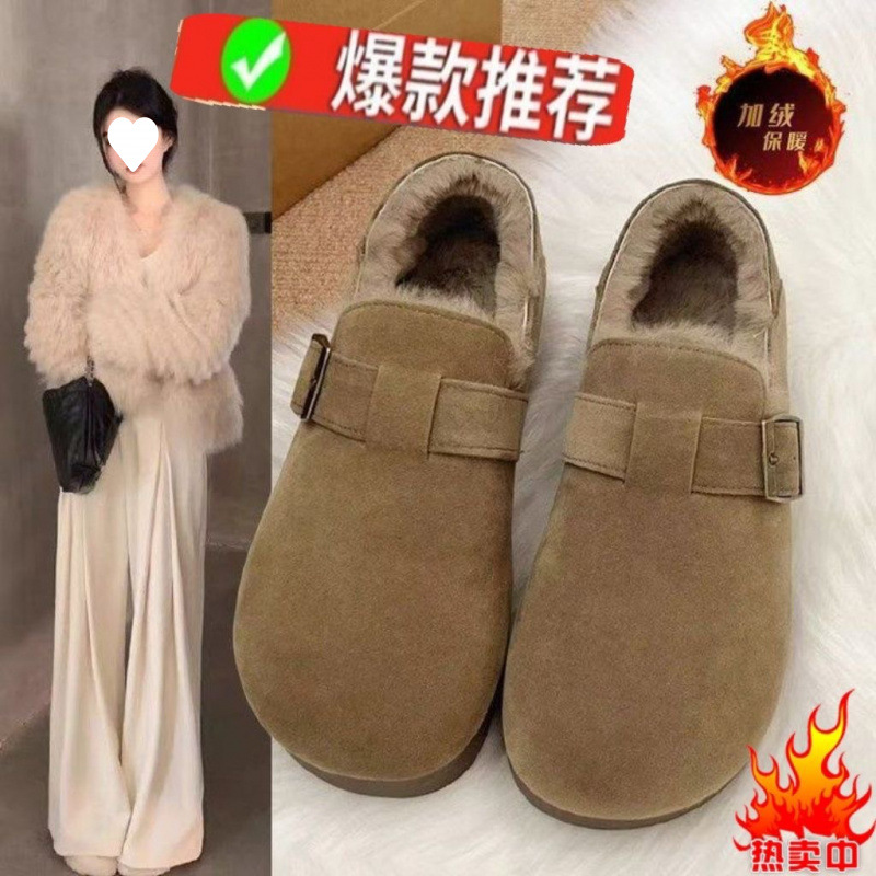 Winter velvet sports, autumn and winter one foot snow boots to keep warm, hairy ballet flat shoes for women