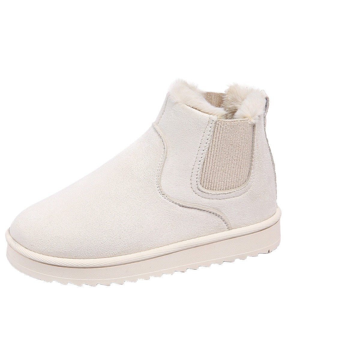 2025 New Foreign Trade Autumn/Winter Snow Boots for Women, Solid Color, Large Size, Hairy Cotton Boots, Elastic Band, Thick Bottom, Short Sleeve Cotton Boots for Women