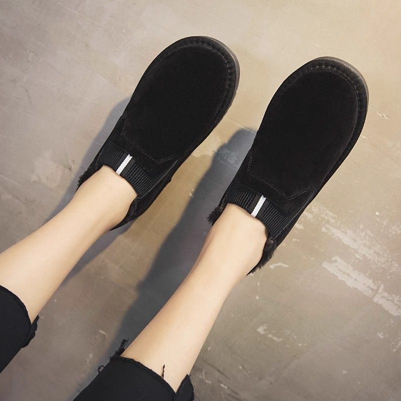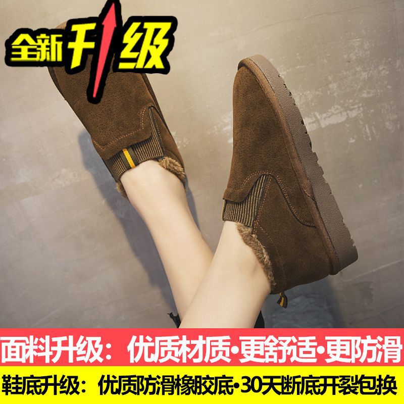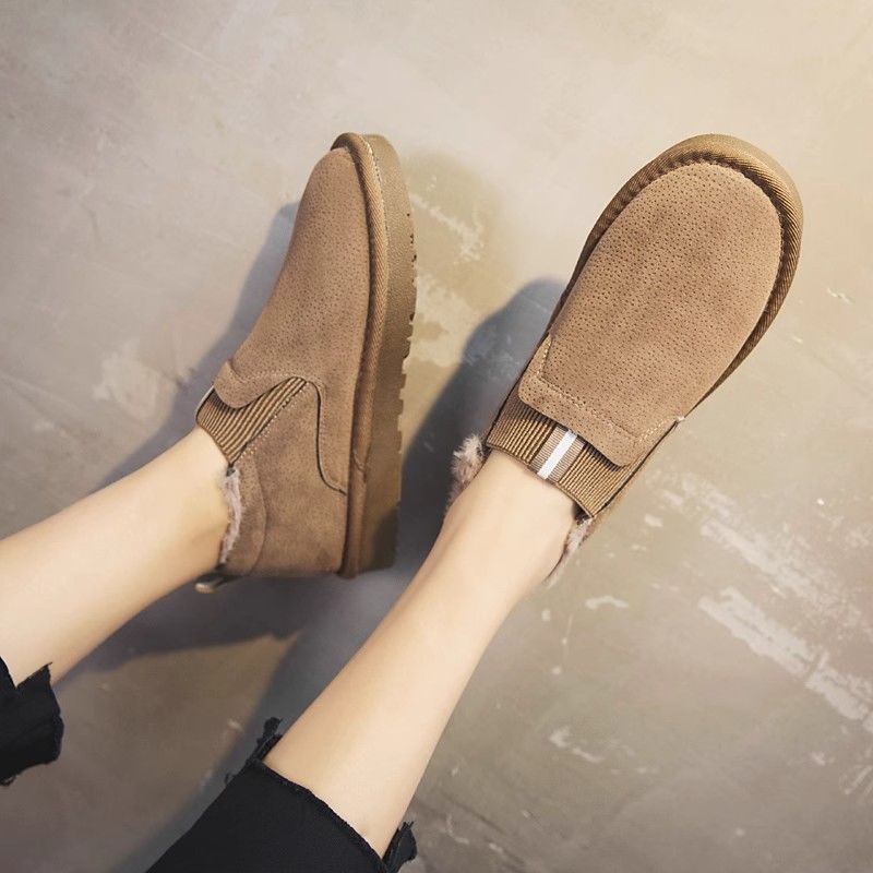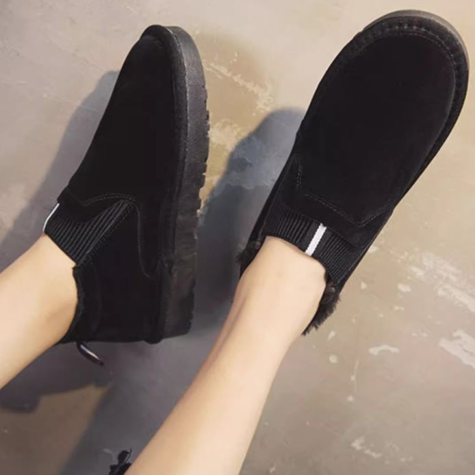 Снежные сапоги с толстым дном женские плюшевые, теплые, противоскользящие короткая короткая педаль осень зима 2024 новые хлопчатобумажные туфли
