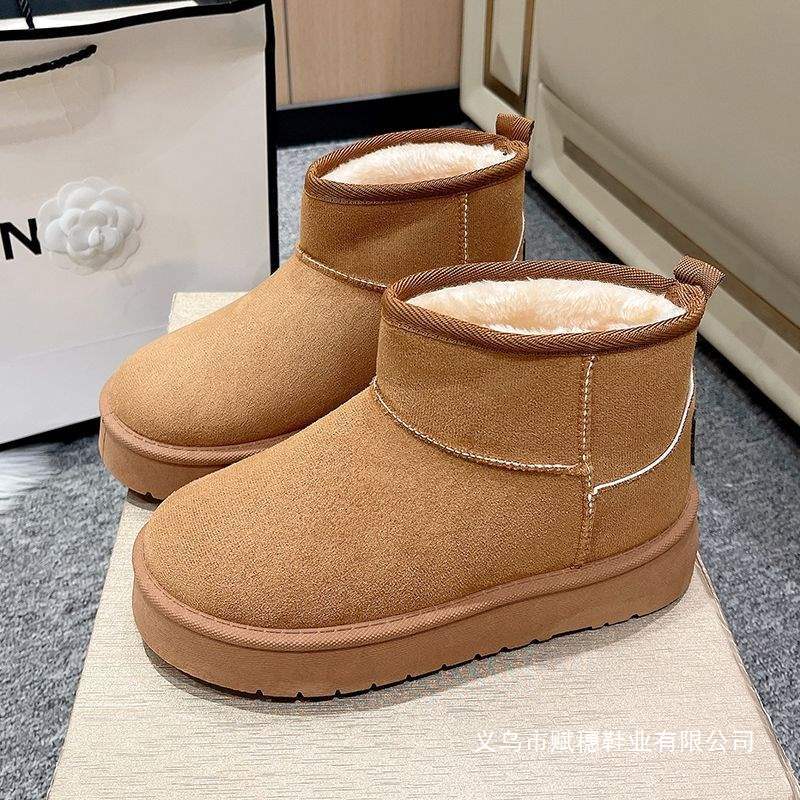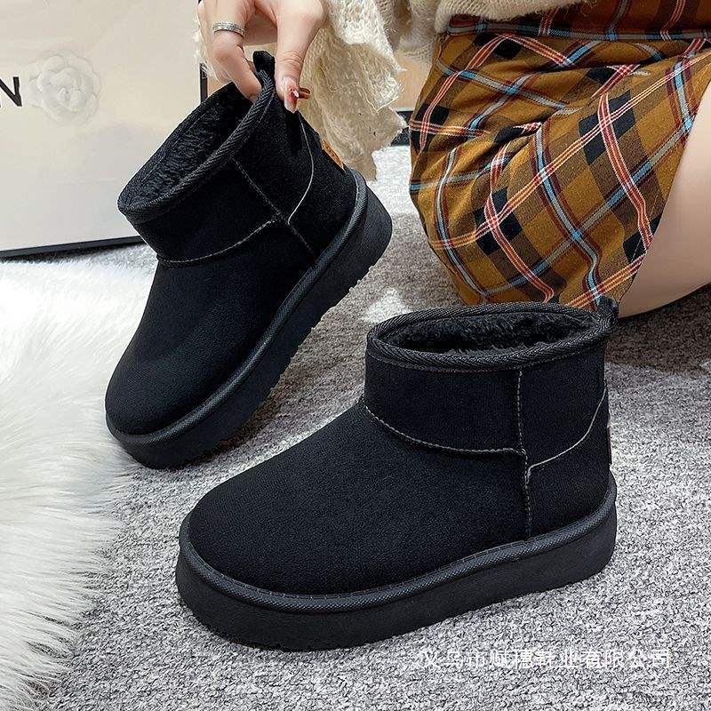 Женщины 4 сезон 2025 с бархатом 4 сезон тепло новые толстые подошвы хлопчатобумажные туфли северо - восточный отдых короткие сапоги снег сапоги снаружи