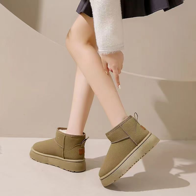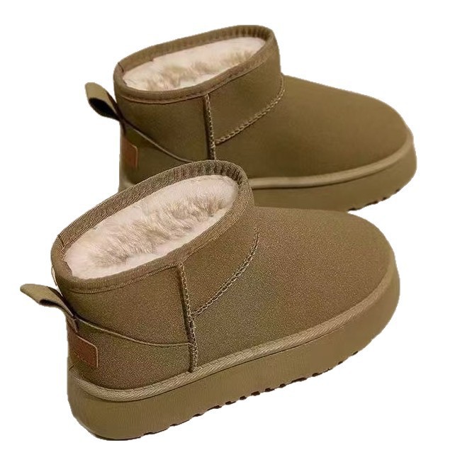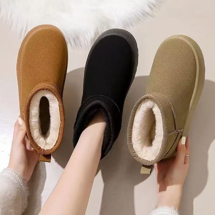 Snow boots for women, anti slip thick sole, one foot pedaling for women, winter foreign trade new style, thickened and plush inner height increasing cotton shoes wholesale
