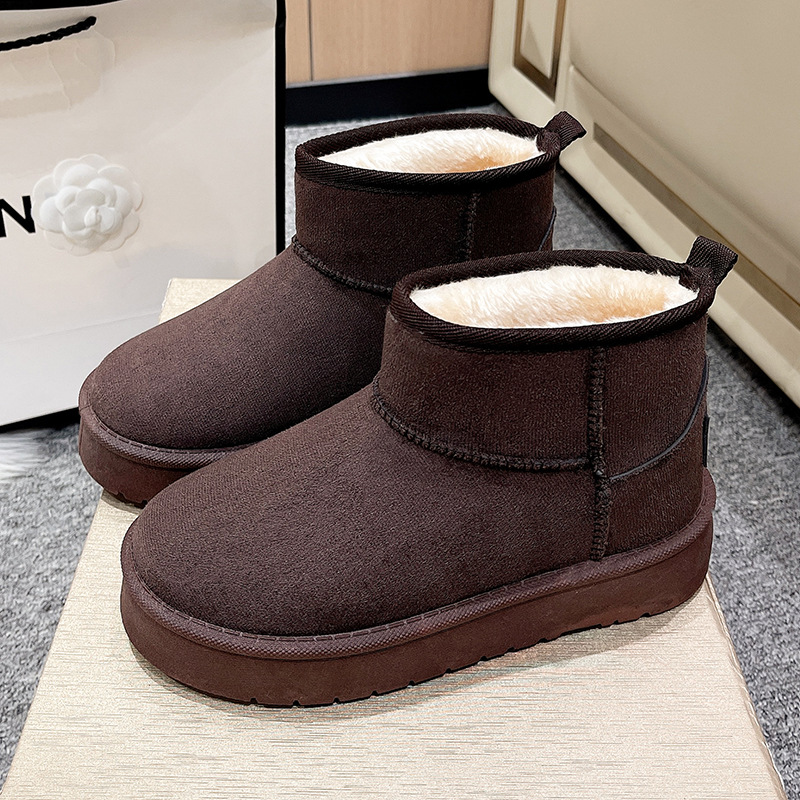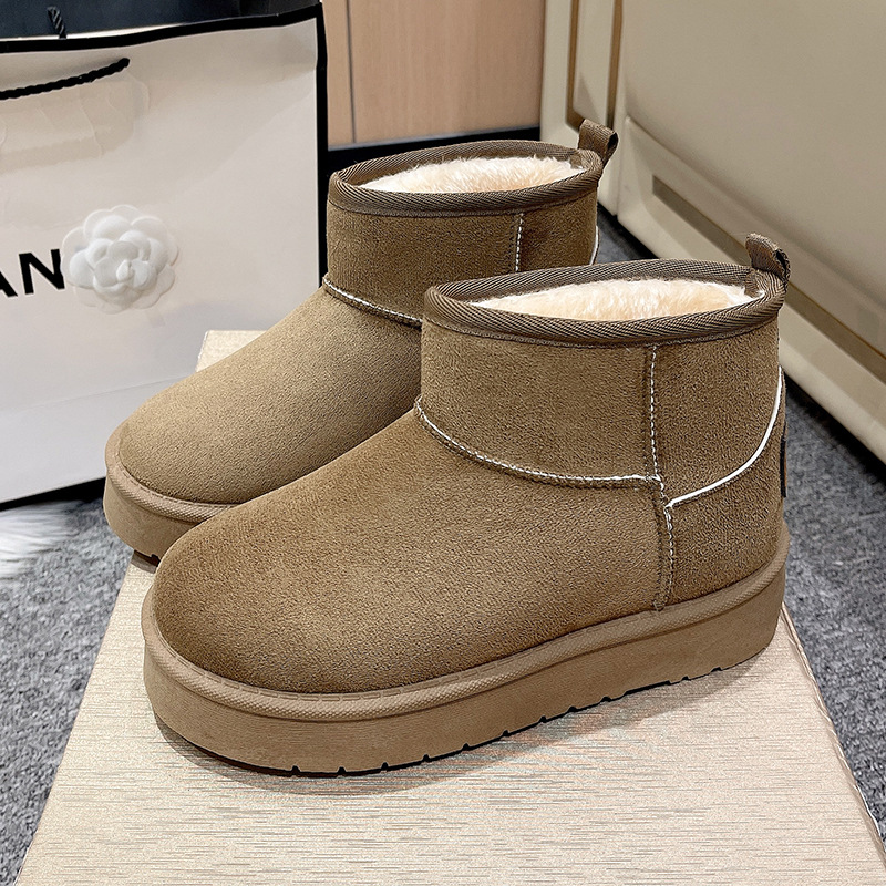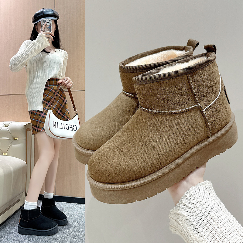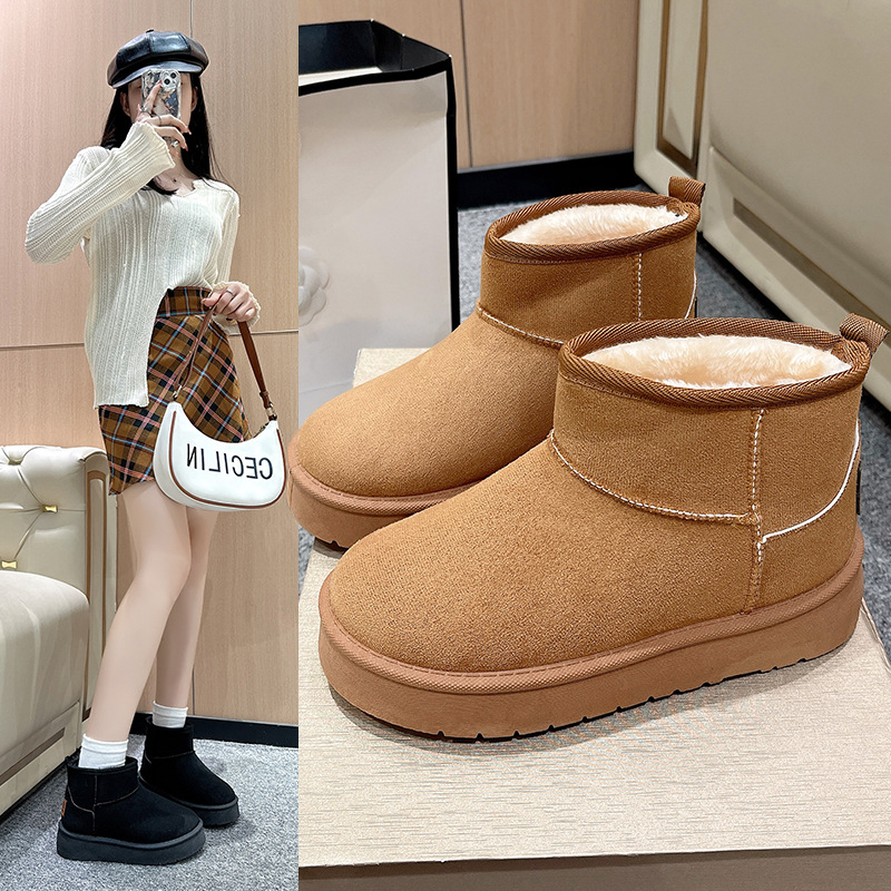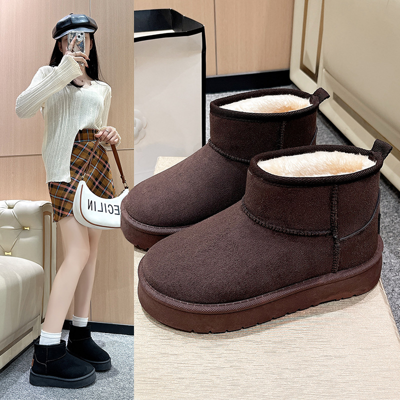 Зимой с плюшевыми средними и короткими снежными сапогами женские теплые, толстые подошвы, противоскользящие снег короткие сапоги наружные хлопчатобумажные туфли