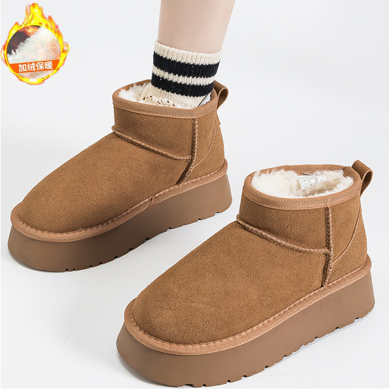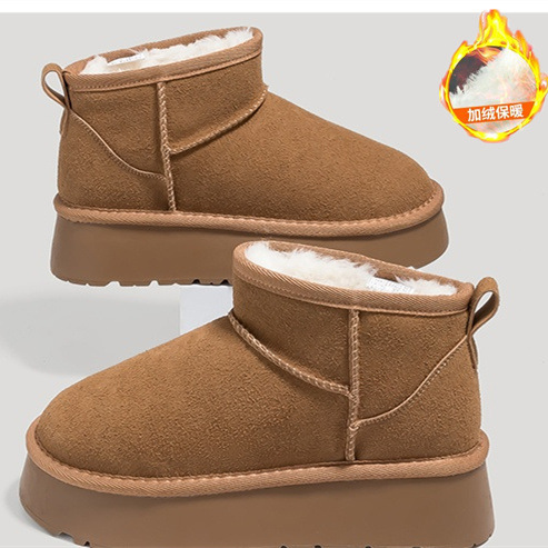 Fur and fur integrated warm thick soled snow boots for women, winter with plush and thickened 2025 new style, one foot Northeast cotton shoes