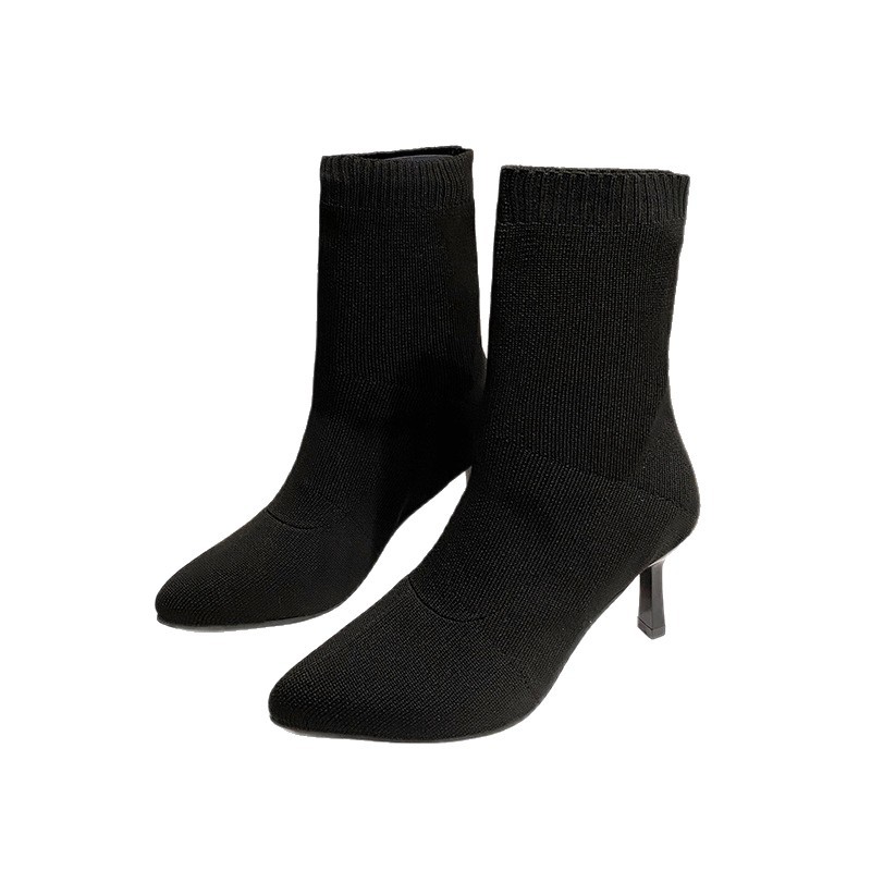 Sock boots for women in the autumn and winter of 2025, pointed toe slim heel high heels, internet famous slim boots, elastic short boots, midsole women's boots