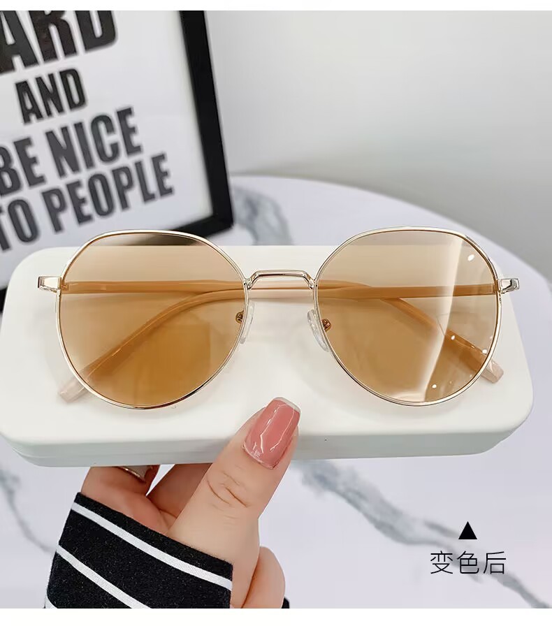 2023 Новые солнцезащитные очки Летние солнцезащитные очки повышенной чувствительности ультрафиолетовые металлические ножки Женские круглые лица тонкие солнцезащитные очки