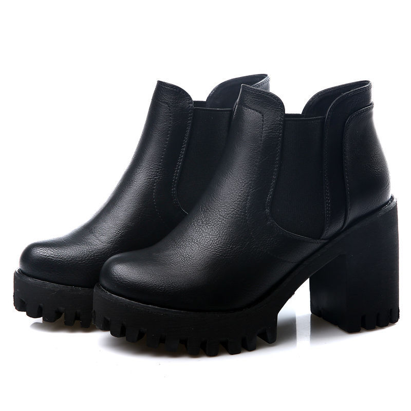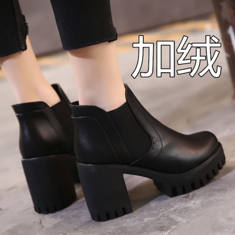 靴子女2022秋冬季新款马丁靴圆头高跟鞋粗跟复古时尚韩版套筒女靴