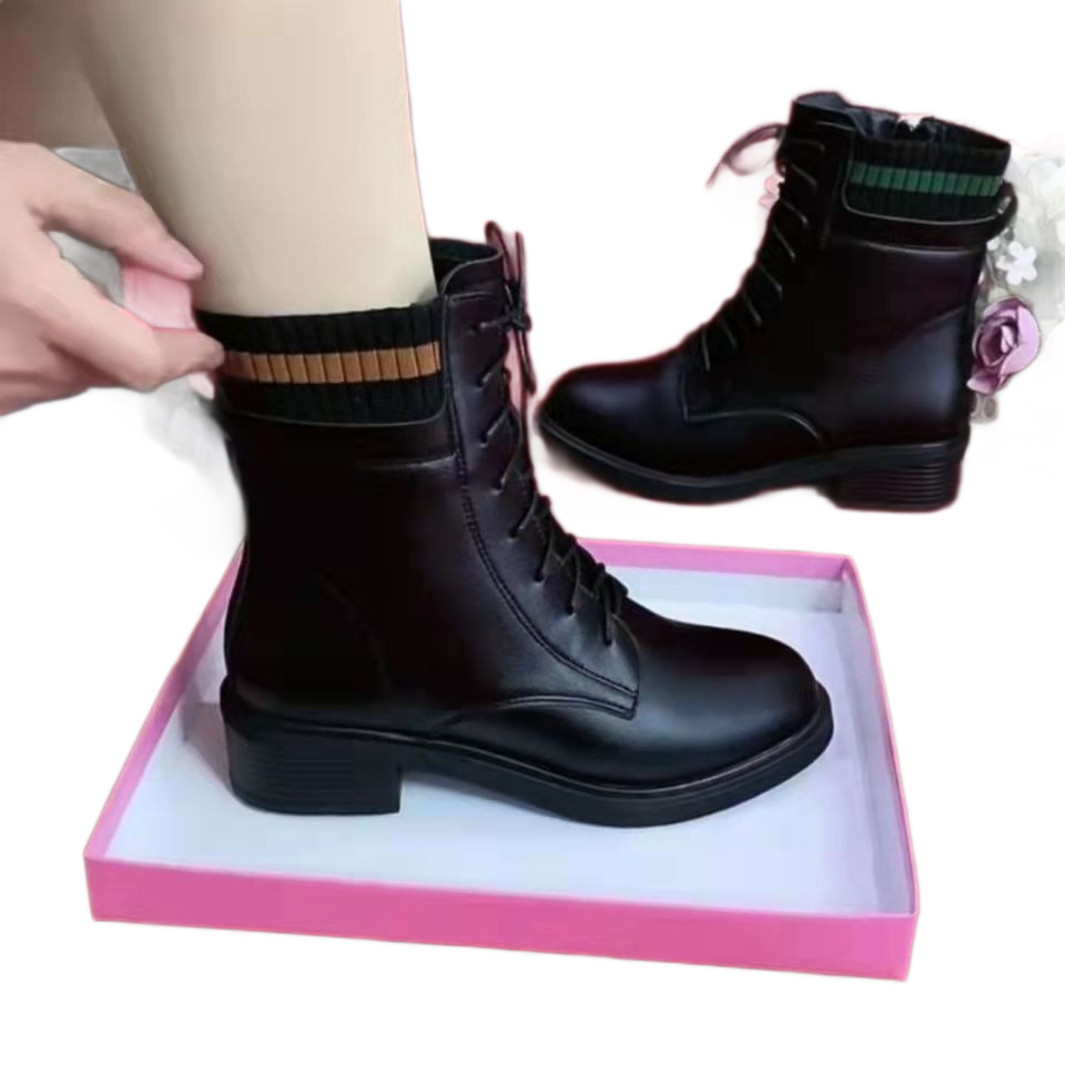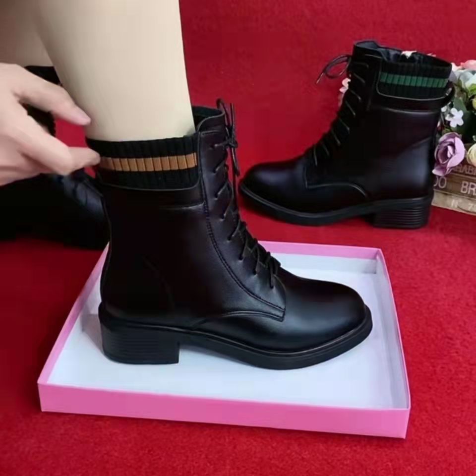 2025 Autumn/Winter New Velvet Martin Boots Women's Thick Heel Soft Bottom Short Boots Korean Edition Versatile Warm Socks Boots