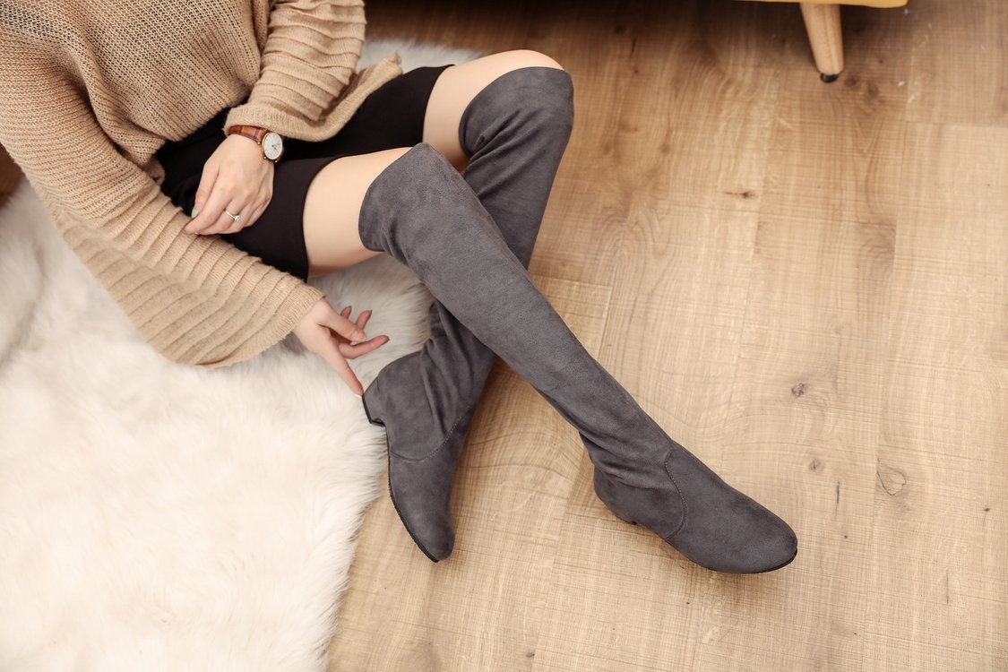 春节新品平底防滑长靴纯色时尚软底马丁靴女鞋休闲运动靴子女鞋