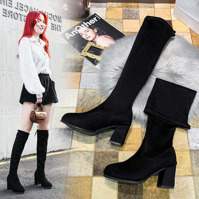High heels over the knee long boots for women, 2024 autumn and winter new style women's boots, elastic high barrel thick heels, women's long tube boots for hair replacement
