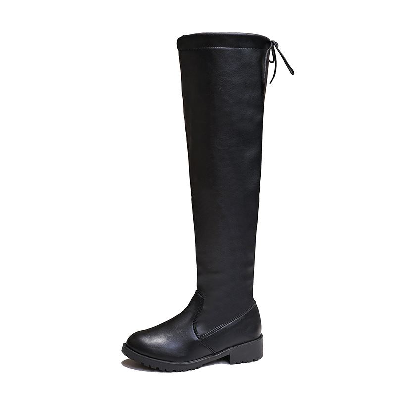 2025 Новые сапоги на коленях женские толстые и тонкие зимние эластичные сапоги задние шнурки высокие сапоги модные сапоги