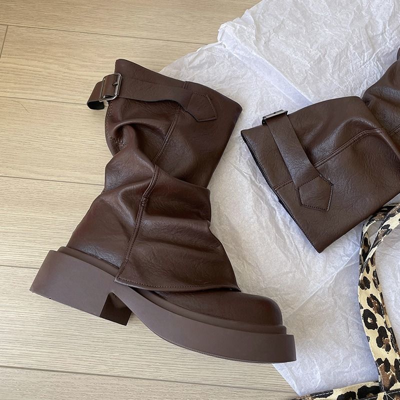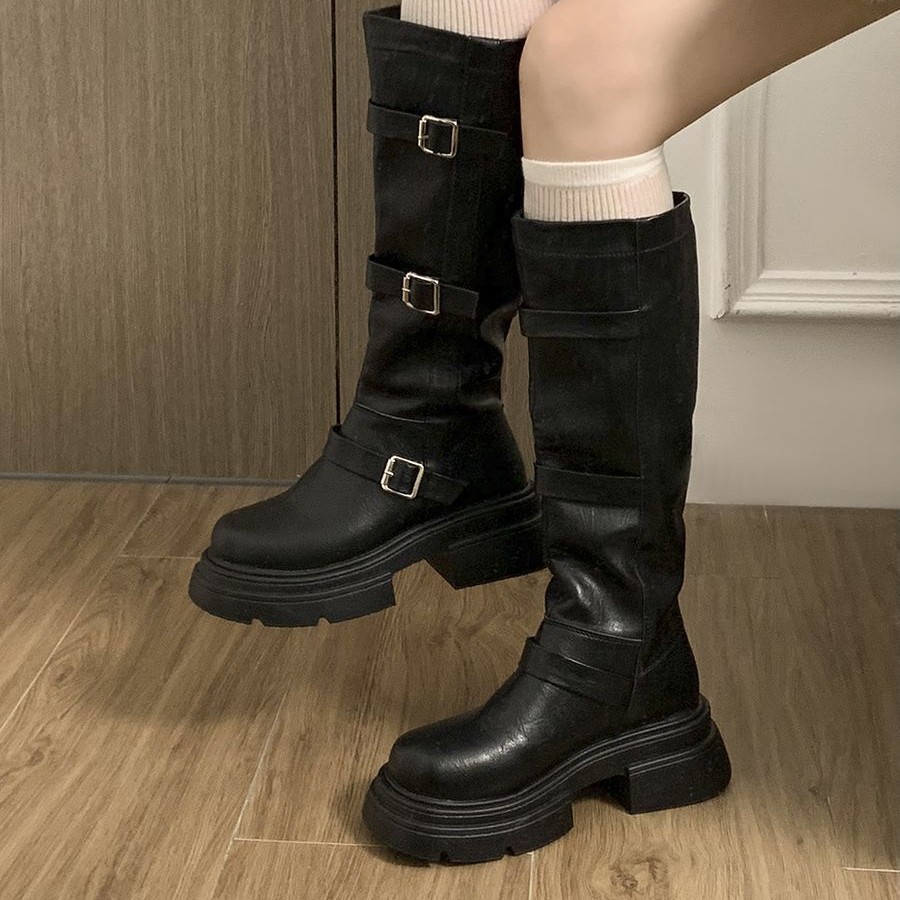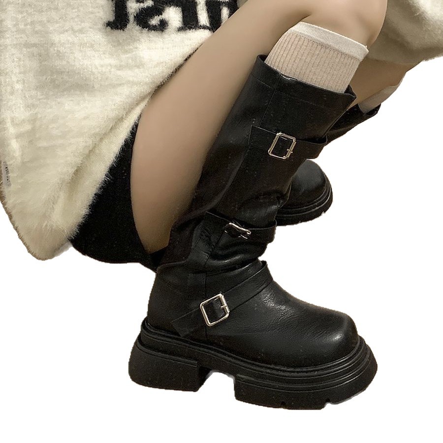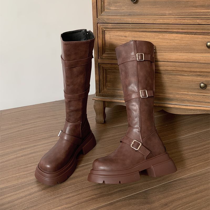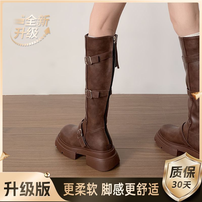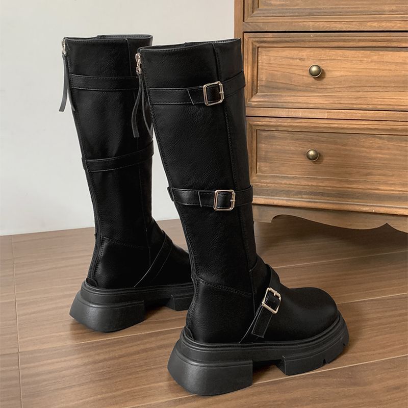 Black petite American style slim and thick soled Western cowboy boots for children, 2025 new spring and summer height increasing retro boots