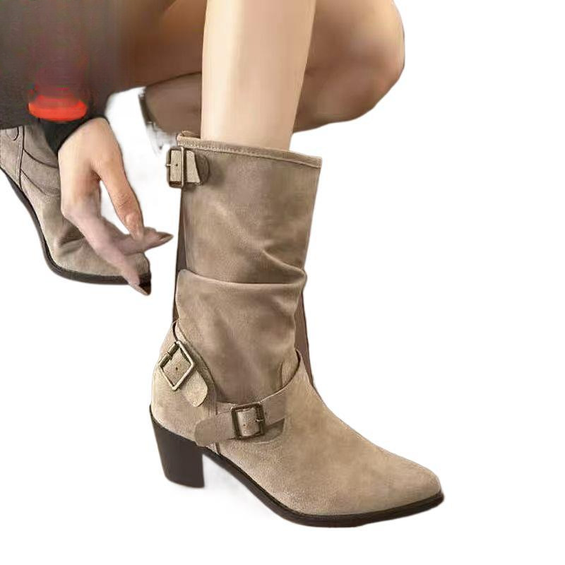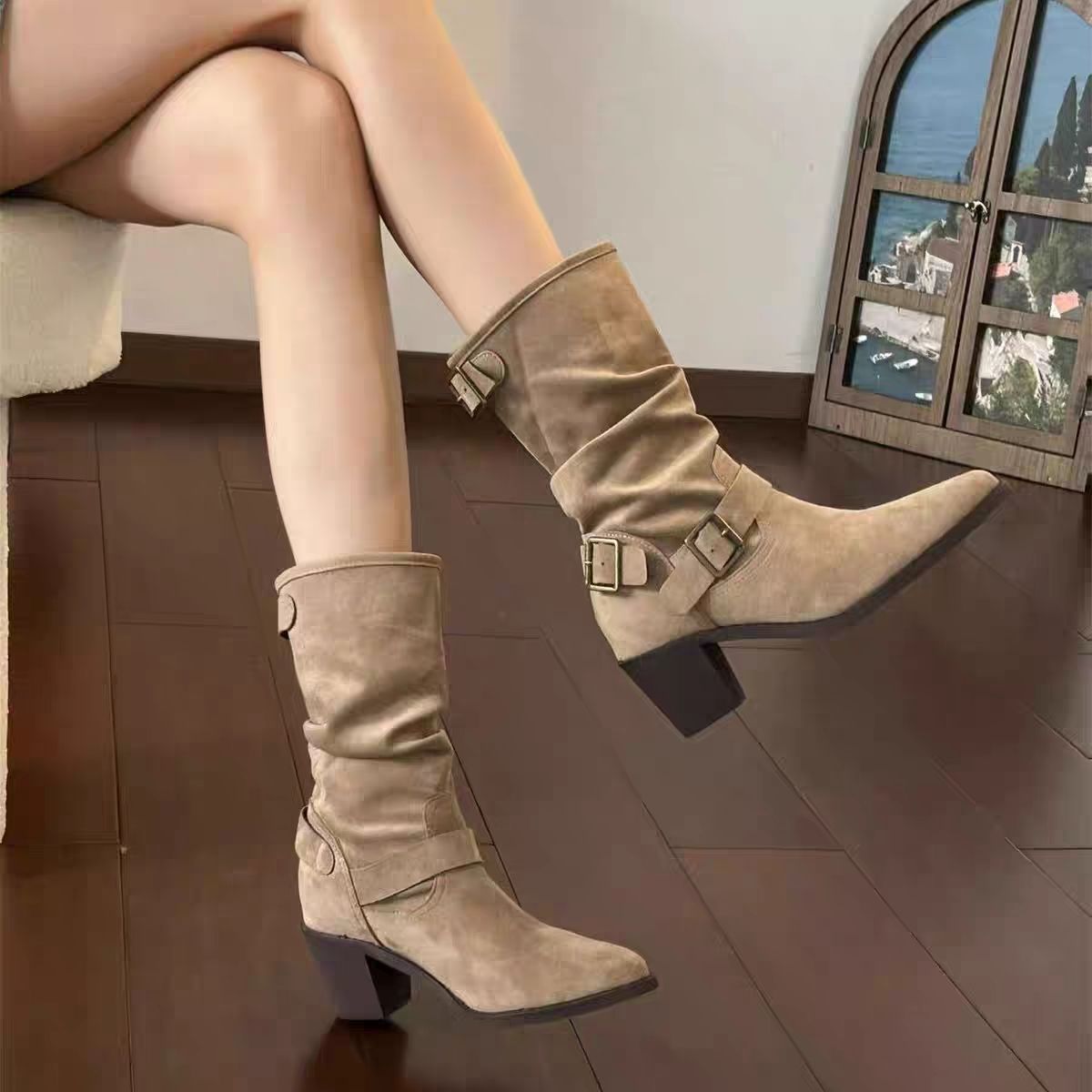 Острые сапоги, толстые сапоги, новые товары, куча ботинок, средний ствол, рыцарские сапоги, западные ковбои, сапоги, мягкие подошвы, женские сапоги.