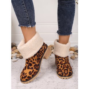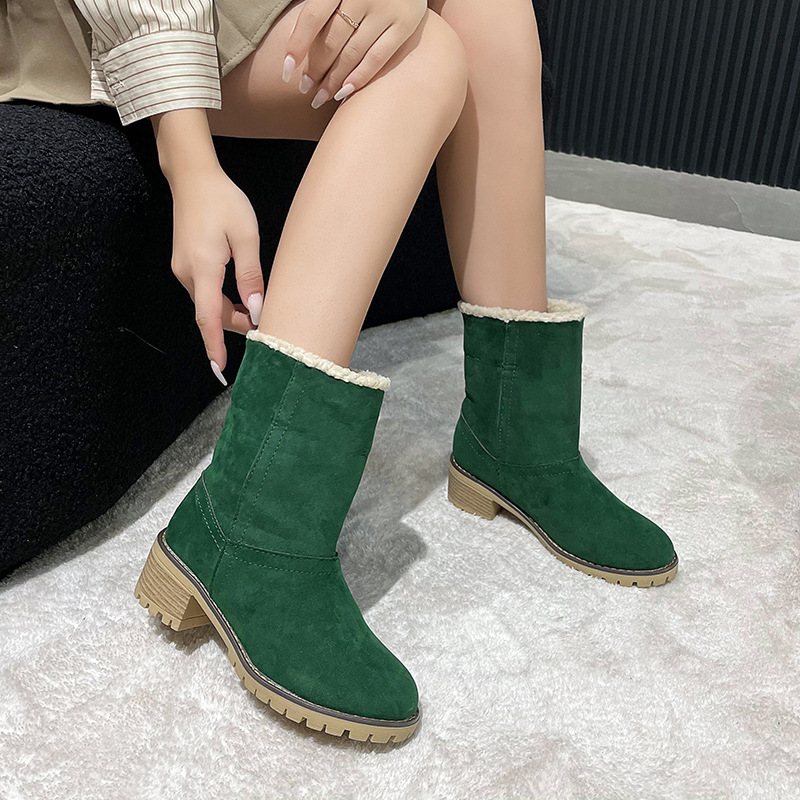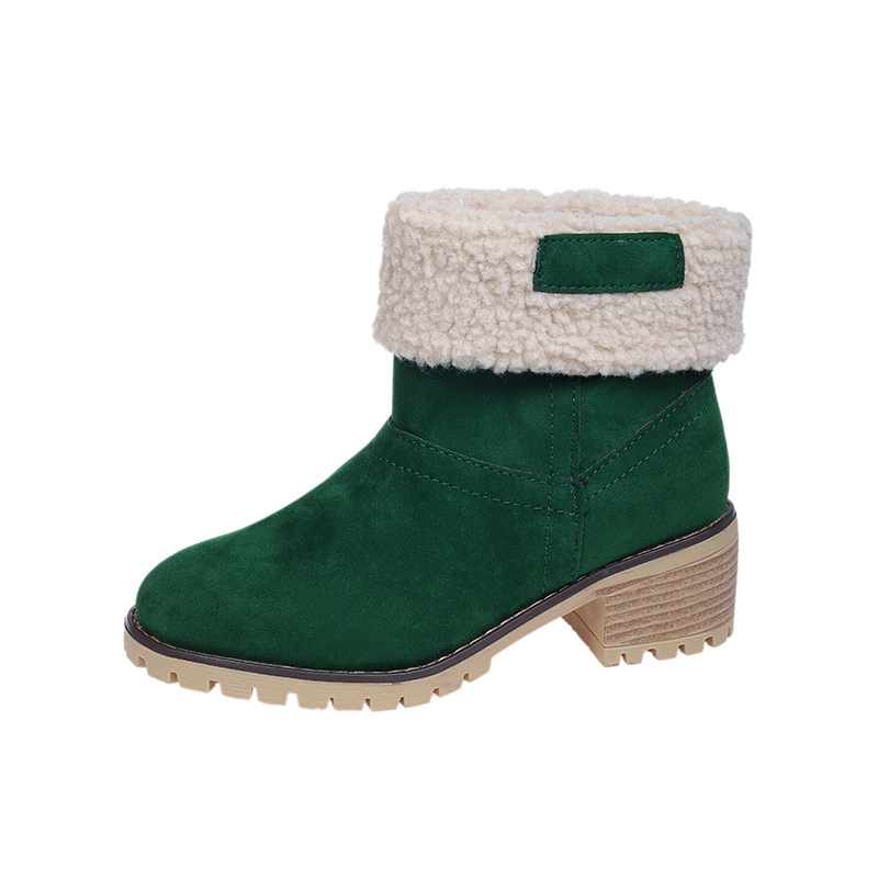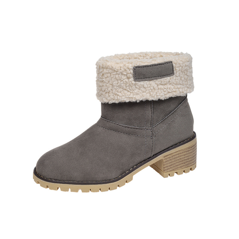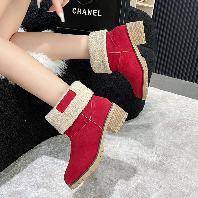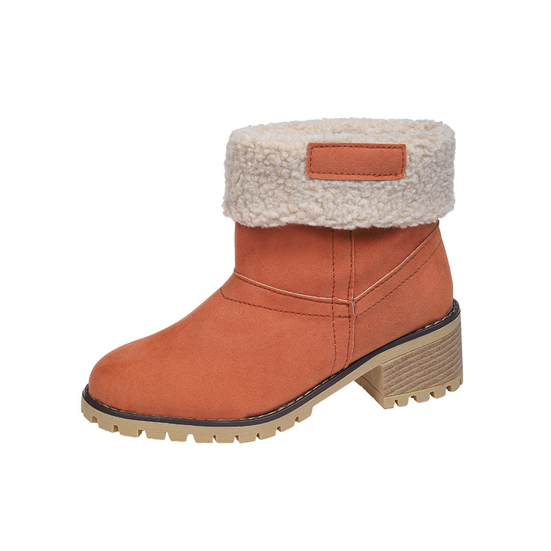 New Short Boots Amazon Women's Boots European and American Medium Heel Thick Heel Flip Fur Snow Boots Large Cotton Boots Women