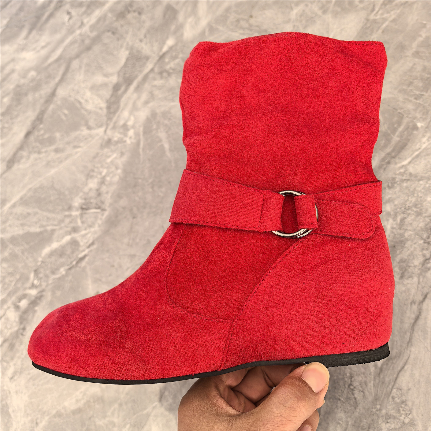 2024新款马丁靴时尚款大码绒面平底皮带扣女短靴套筒圆头女靴批发