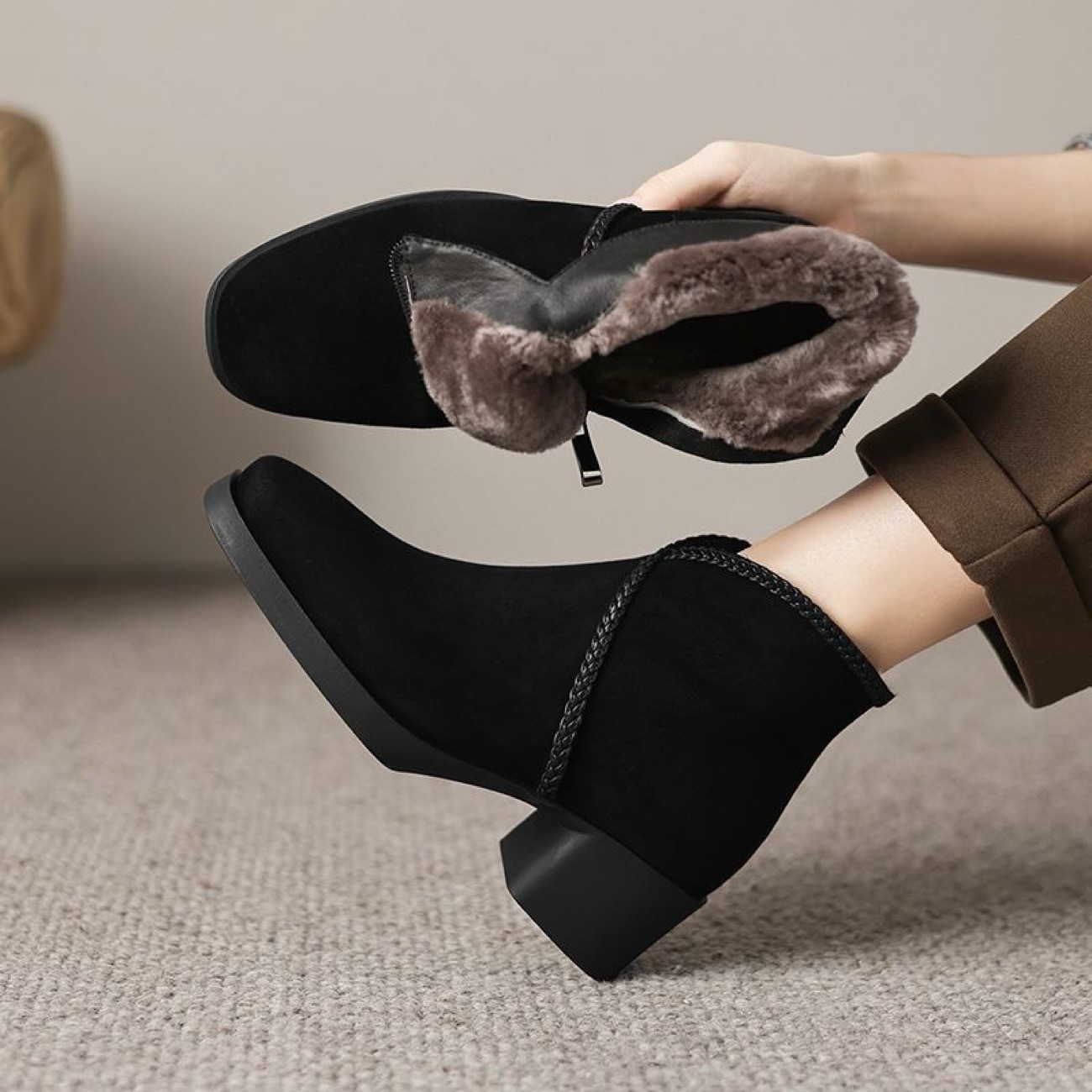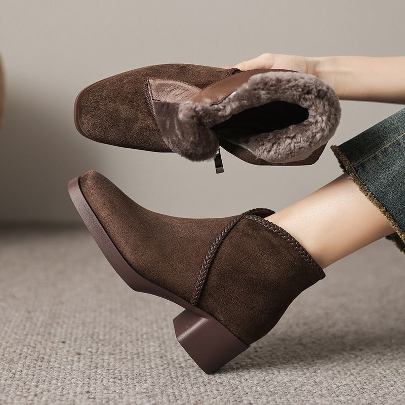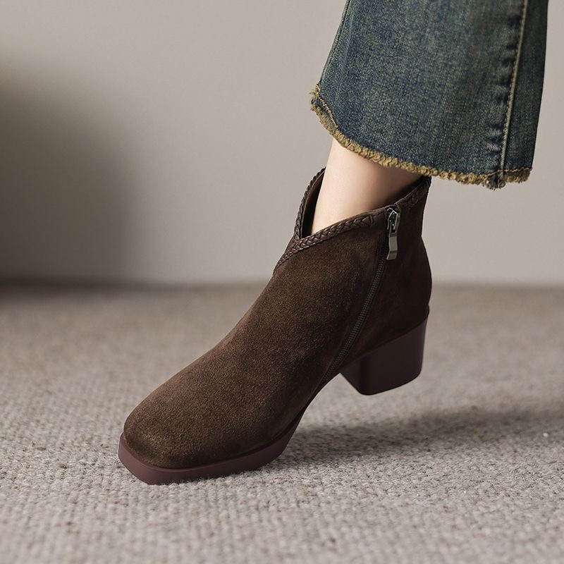 2025 Winter New French Quality Chelsea Boots Retro Style Square Head Middle Heel Fashion Boots Women's Short Boots