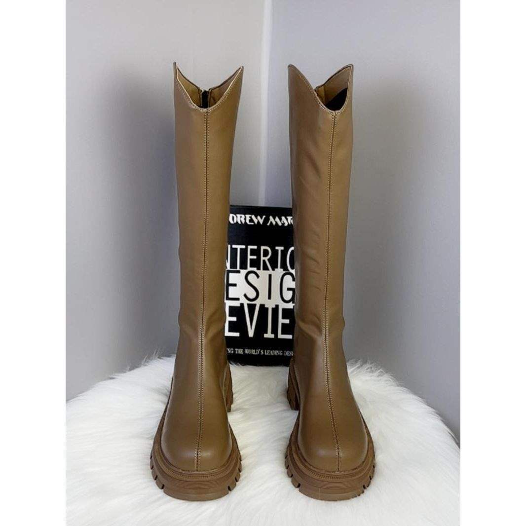 2025 autumn and winter new high top knight boots for women, with horseshoe heels that increase height and show leg length, and zipper round toe boots that are trendy