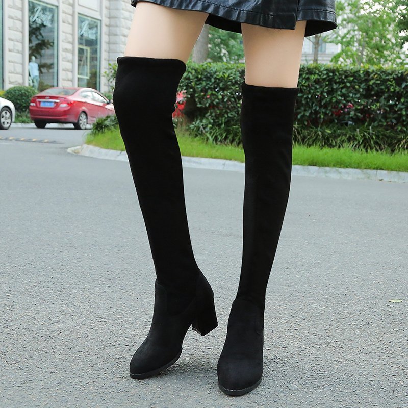 Сапоги на коленях, эластичные сапоги, зима 2023, новые европейские и американские сапоги с острым носом Martin с пухом и толстыми каблуками