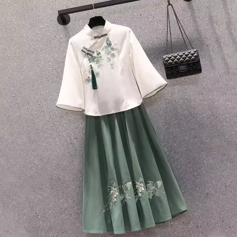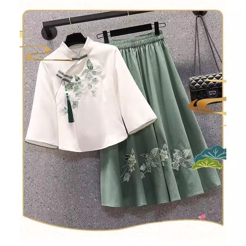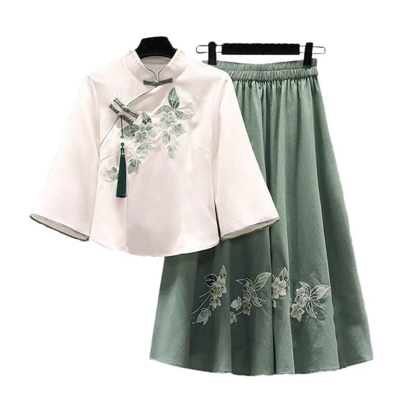 流行改良中式汉服套装女夏季新款中国风日常穿搭温柔两件套氨纶