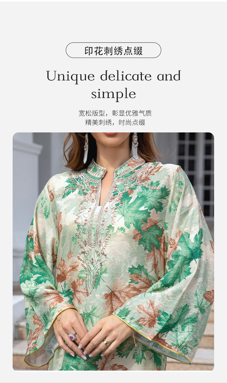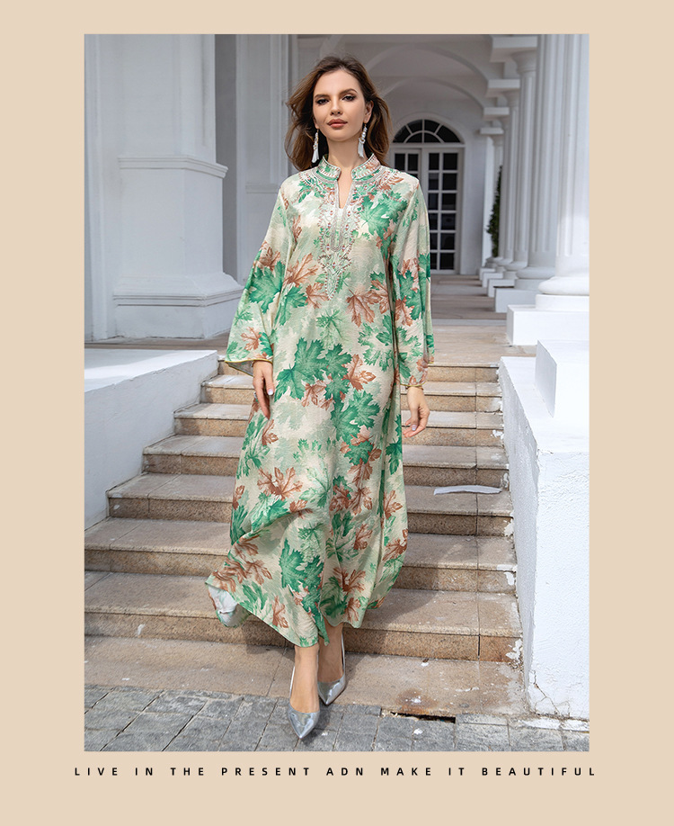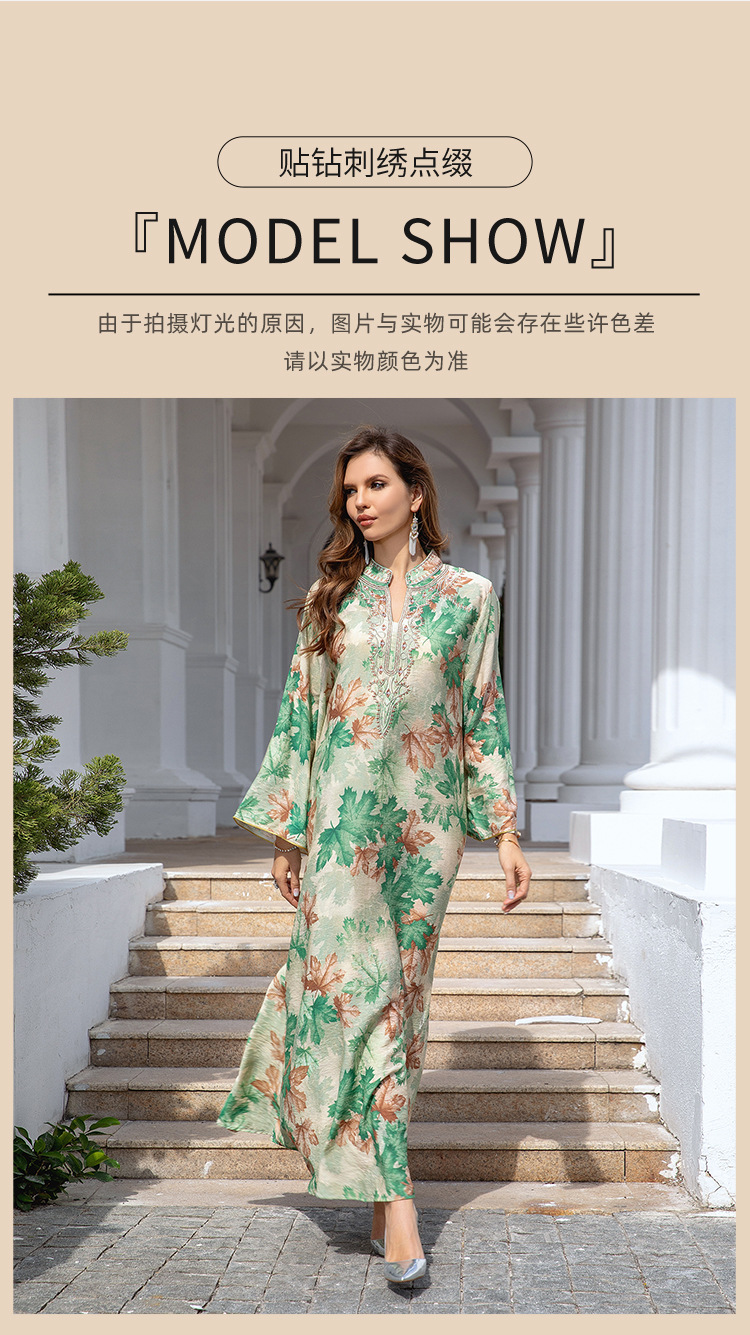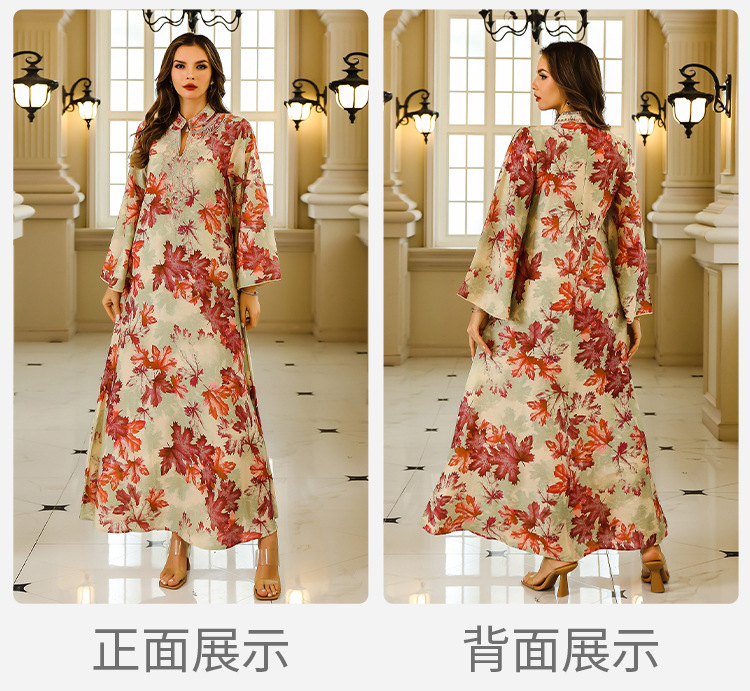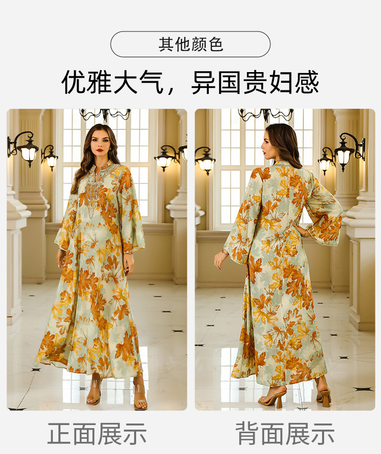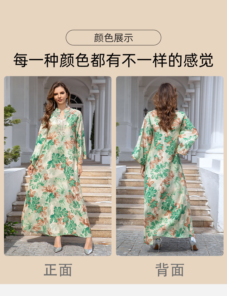 Spot Middle East Cross border Muslim Abaya Summer Robe Dress Printed Long Dress Dubai Robe Foreign Trade