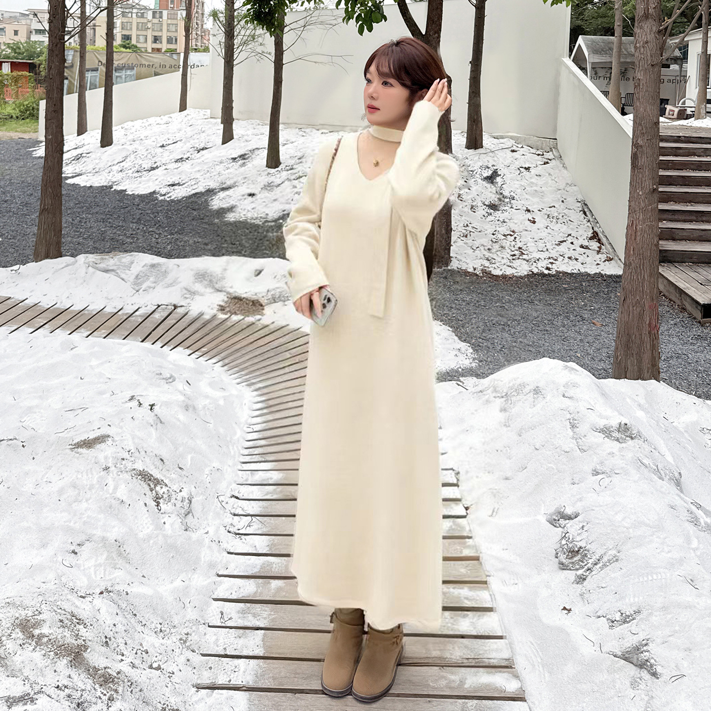 Yino plus size women's scarf straight tube dress women's 2025 winter new loose and slimming woolen dress 433744