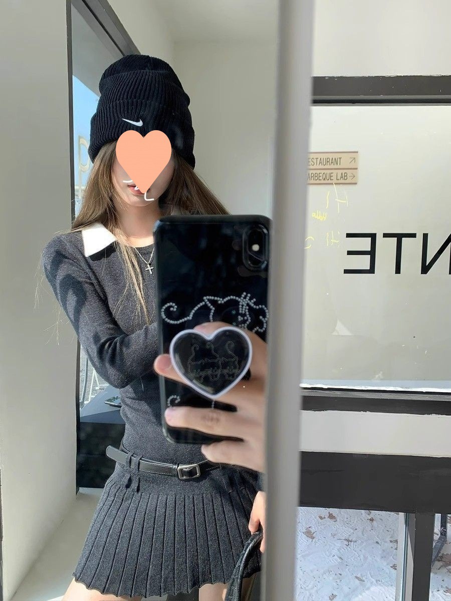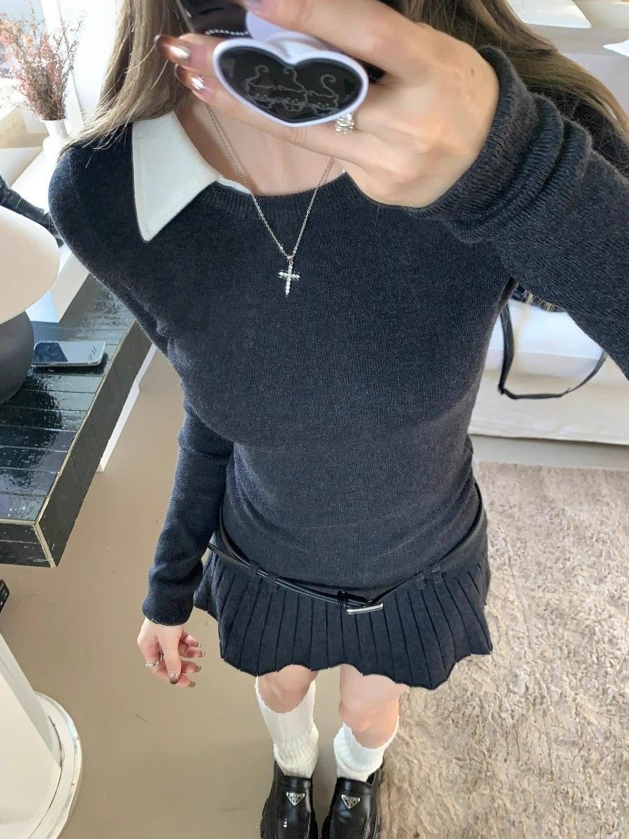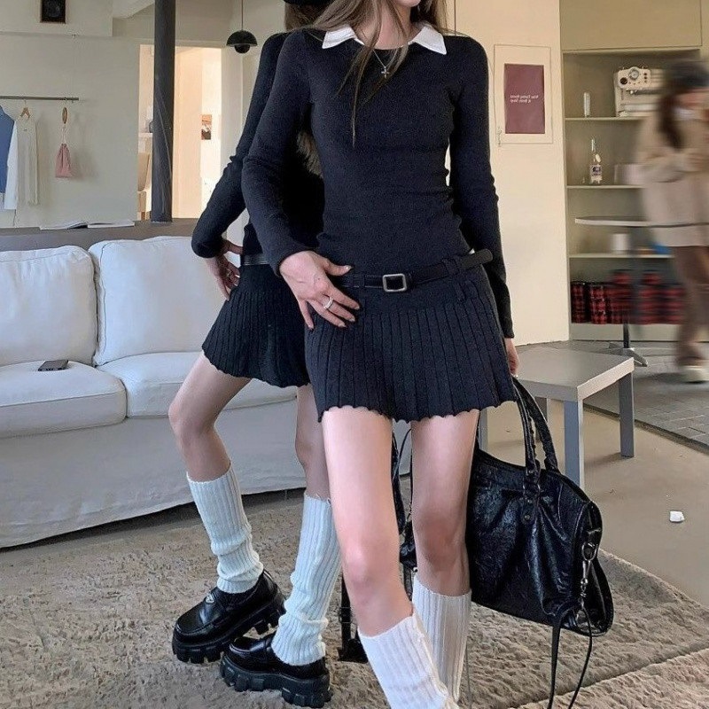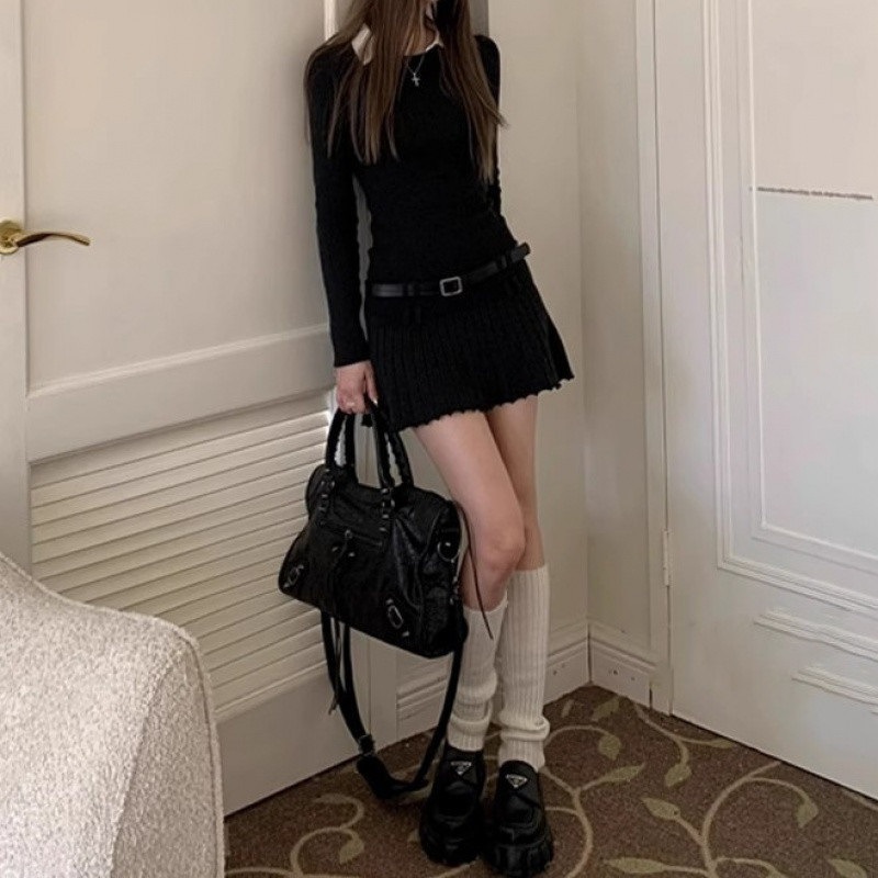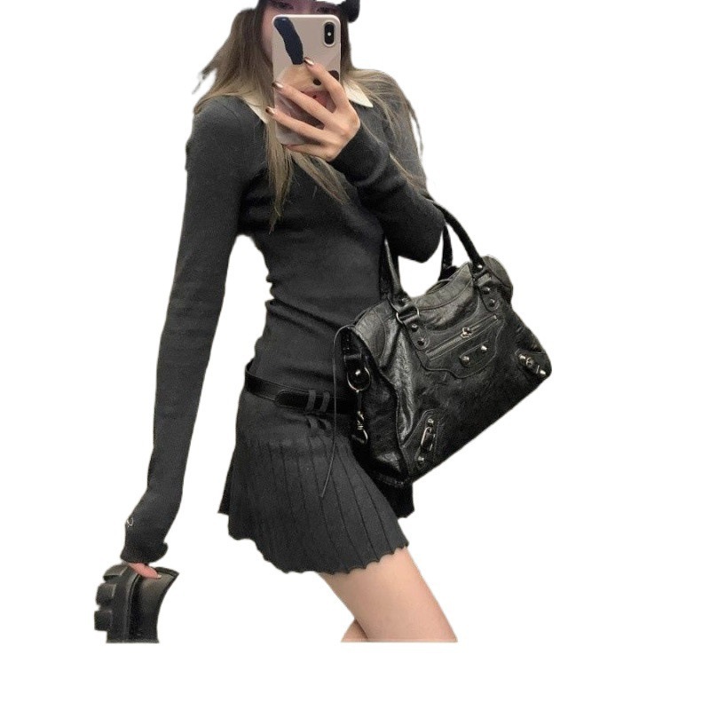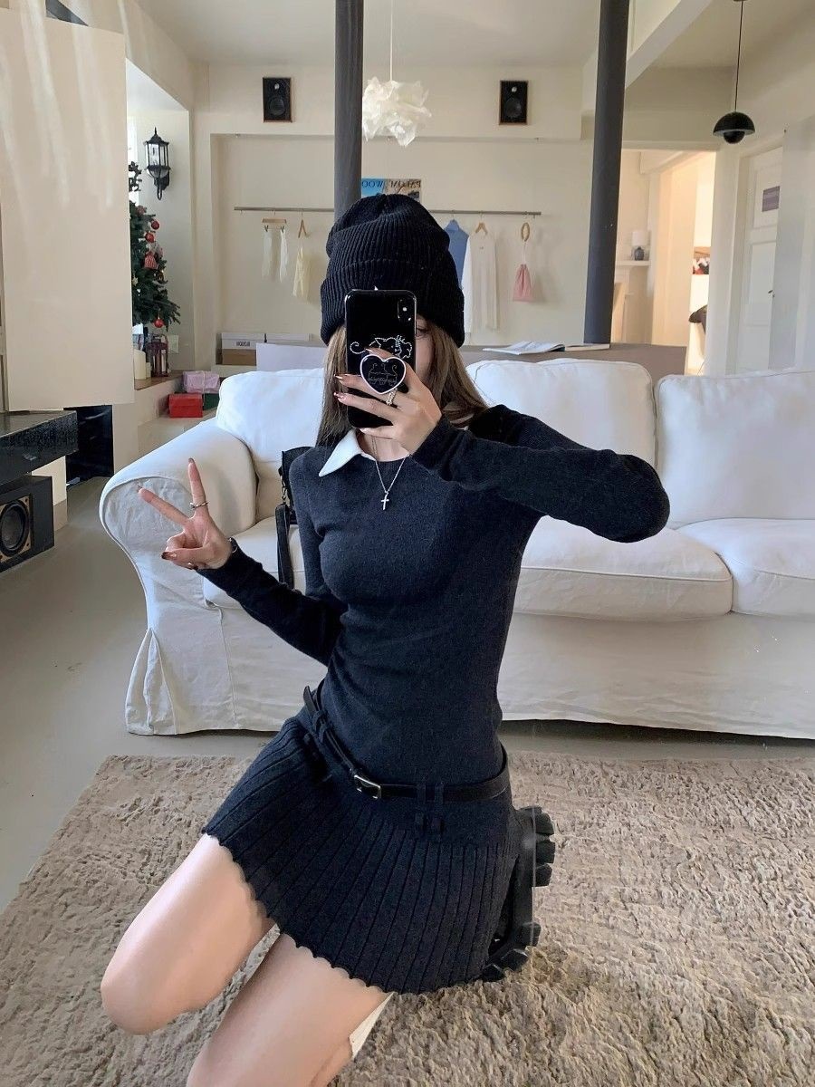 Large size design fake two piece knitted dress women's autumn and winter new style slim fit and slimming spicy girl A-line pleated short skirt