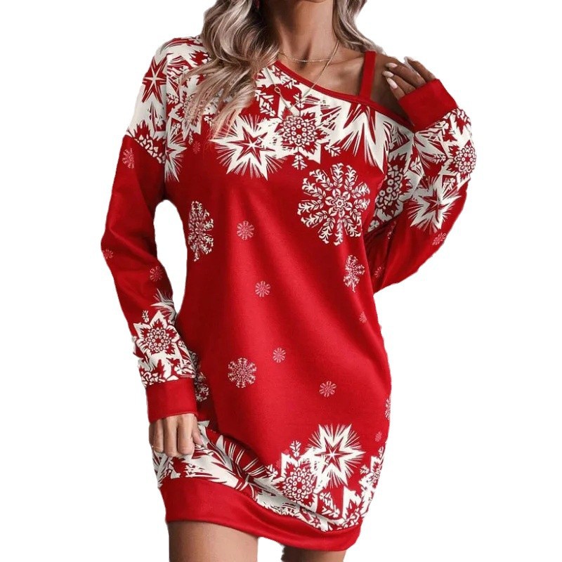Cross border European and American Christmas dress fashionable, sexy, versatile, European and American style red