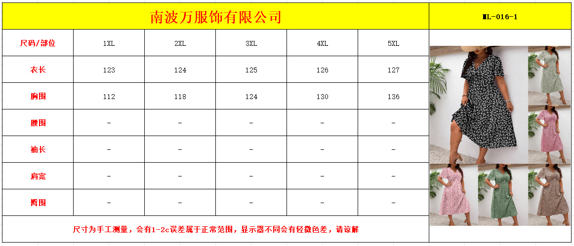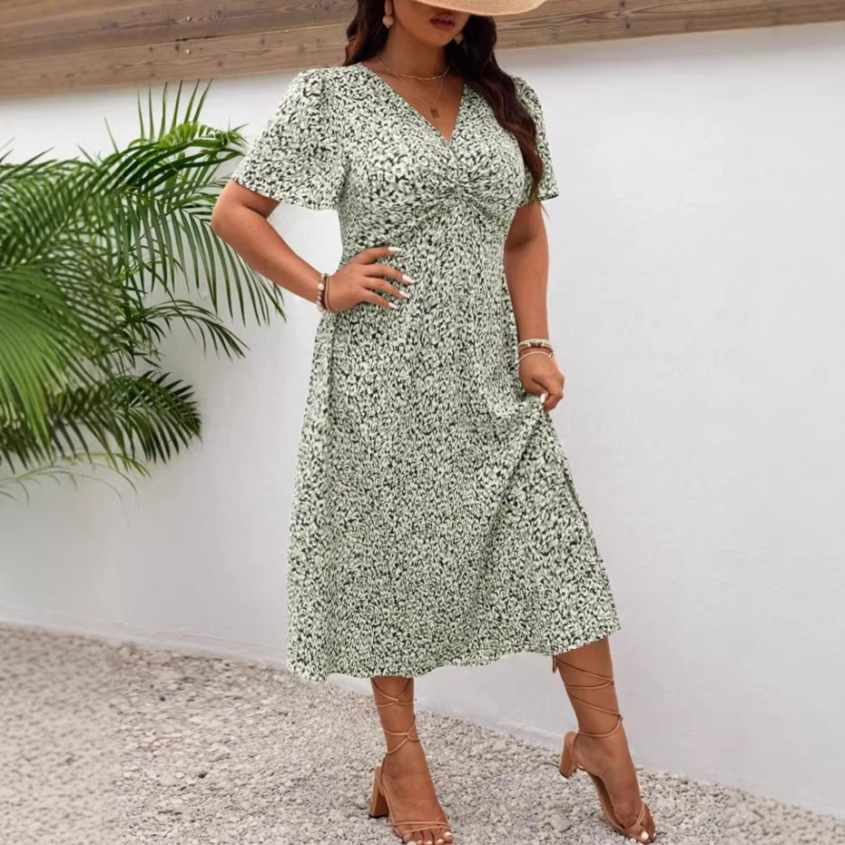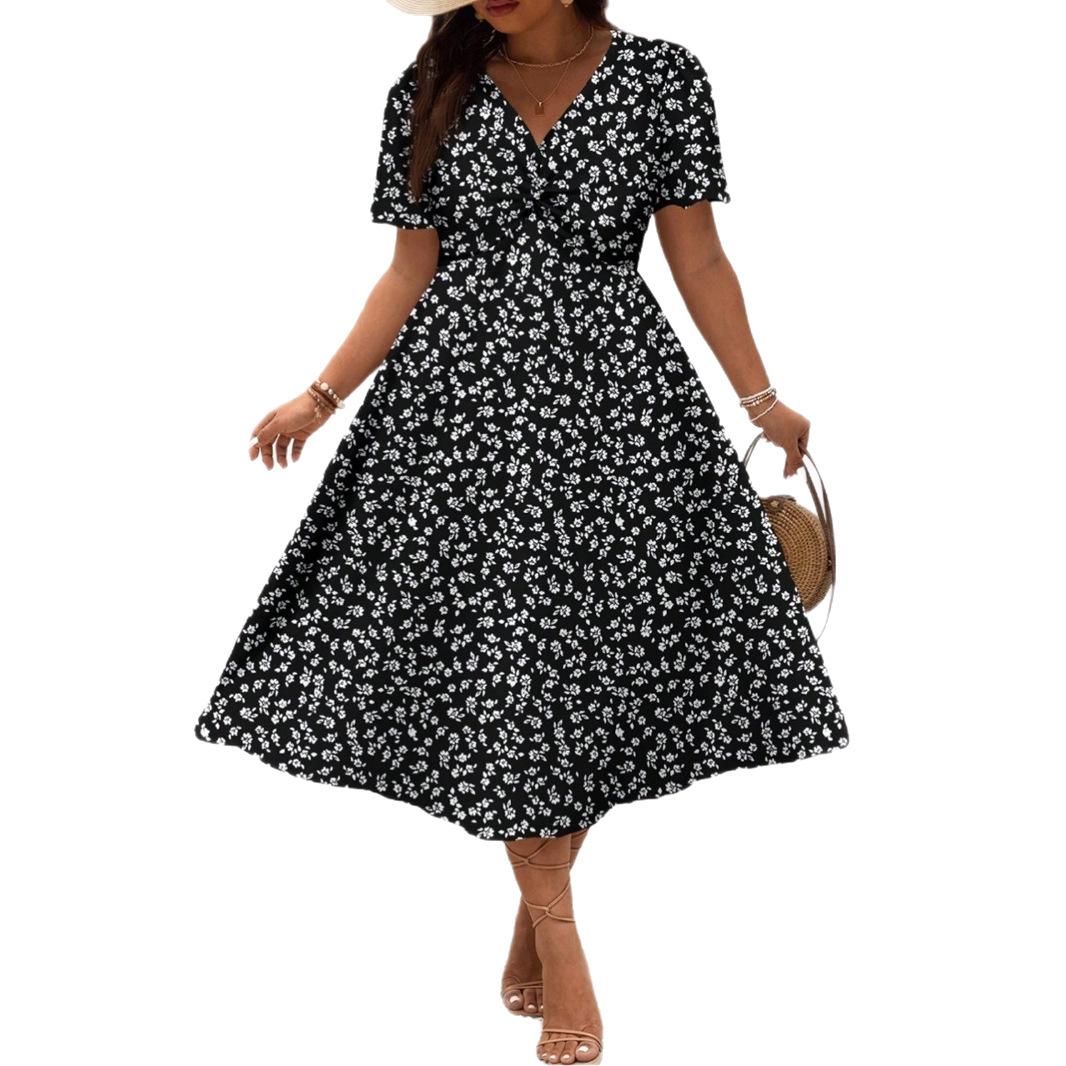 2025 European and American cross-border Amazon Wish new summer V-neck fresh and sweet printed floral plus size dress