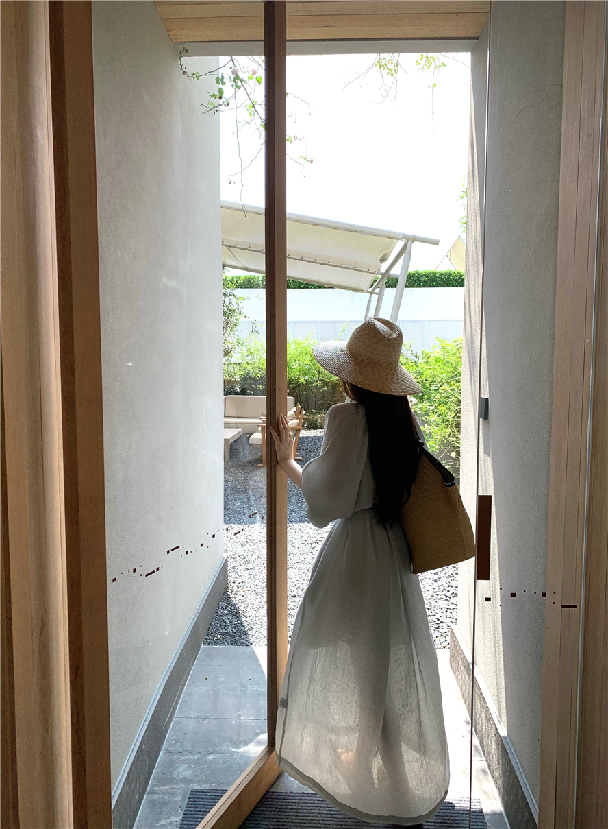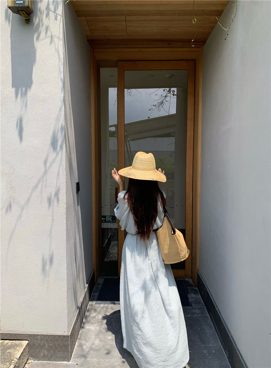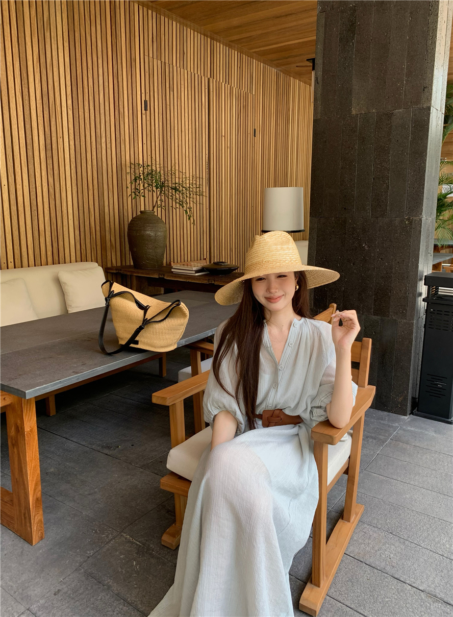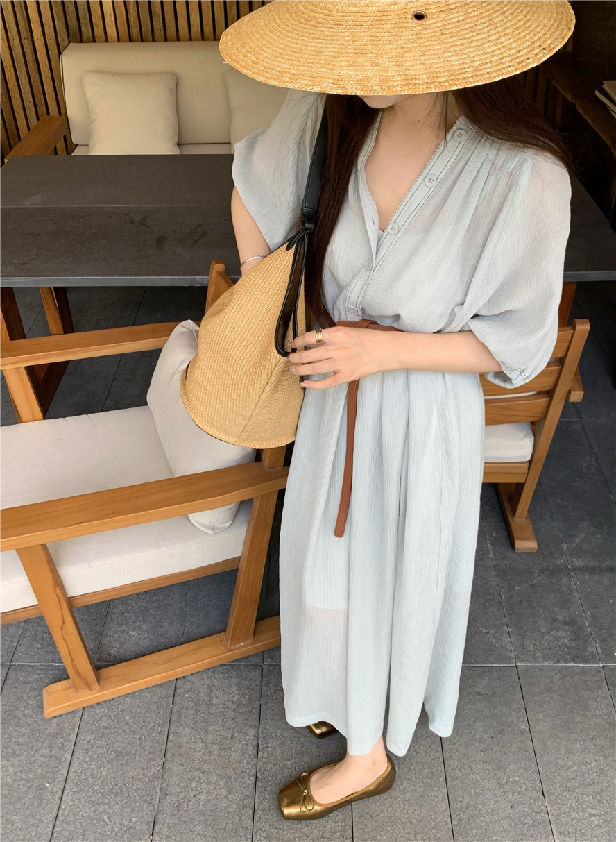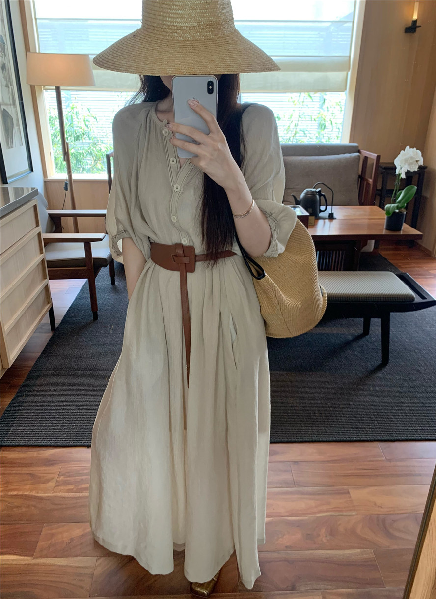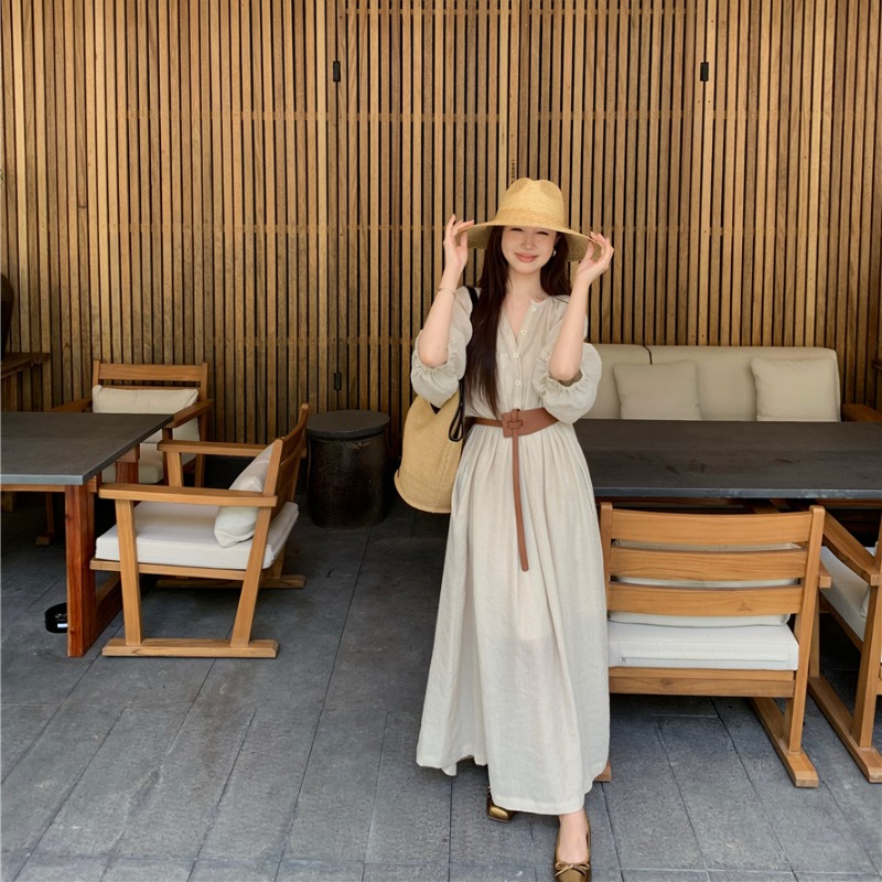 Large French style seaside dress for women in spring and summer, slightly overweight in mm, covering the belly to show off thinness, chiffon half sleeved long skirt