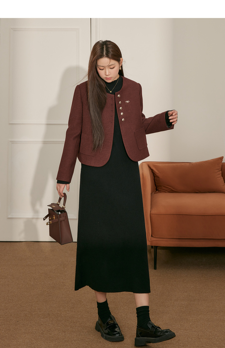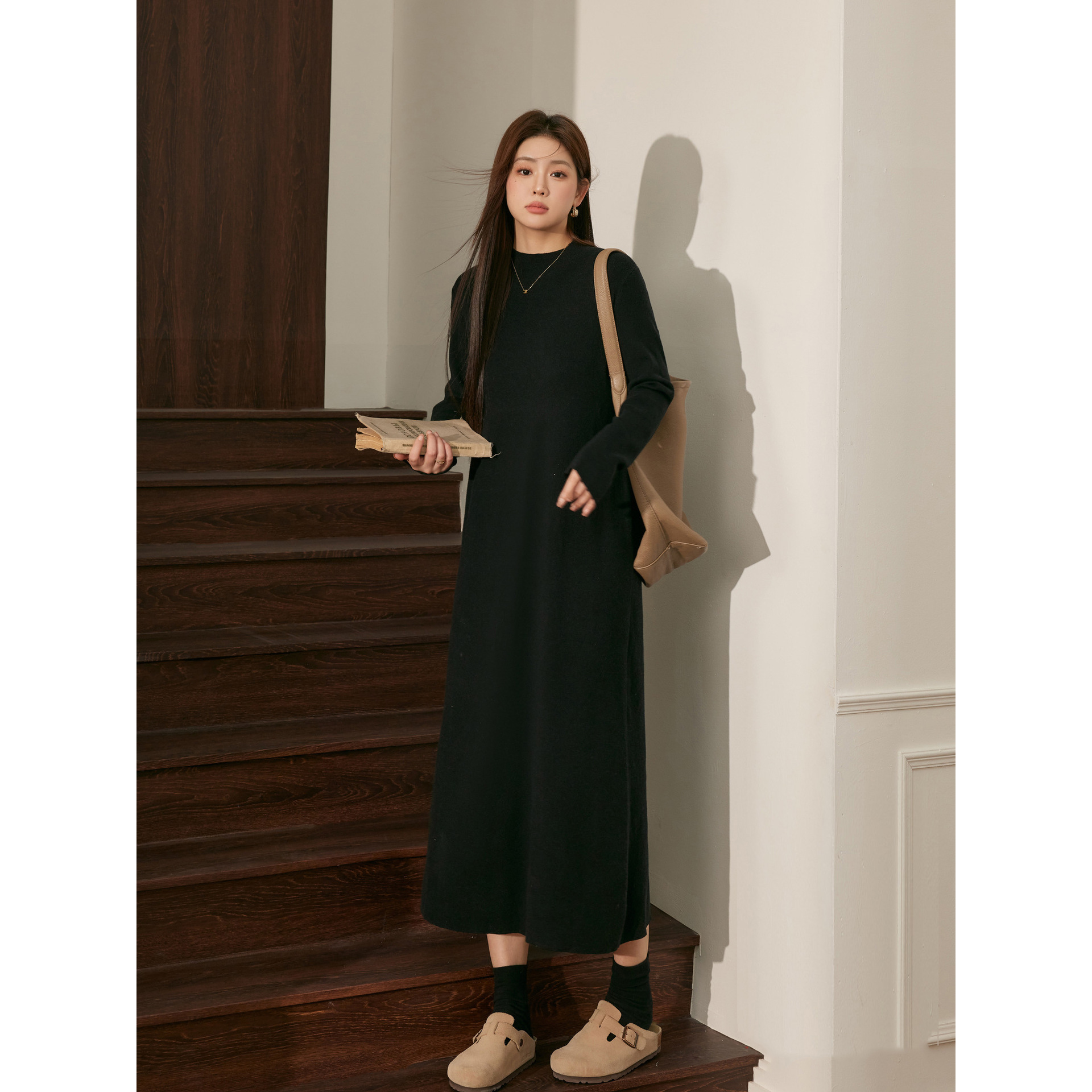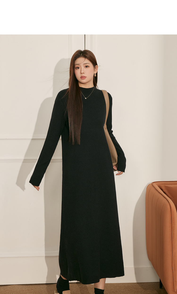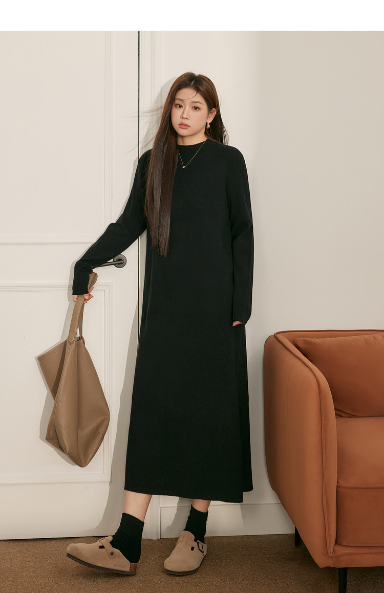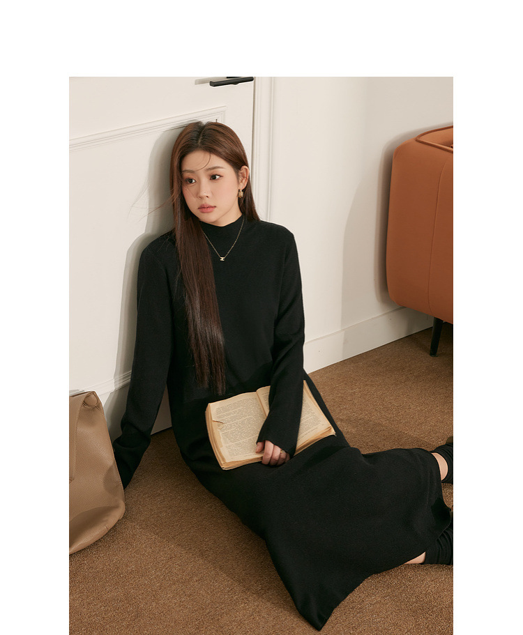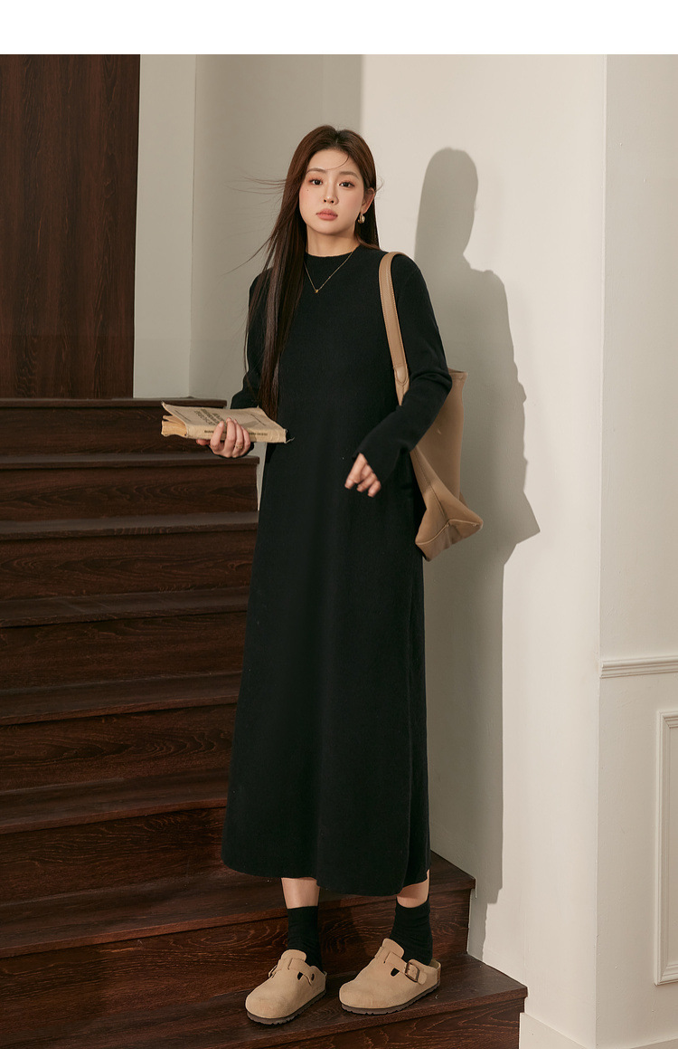 60204 # Blue Language Large Size Fat MM Temperament Black Knitted Woolen Dress for Autumn and Winter Loose Look Slimming Bottom Dress
