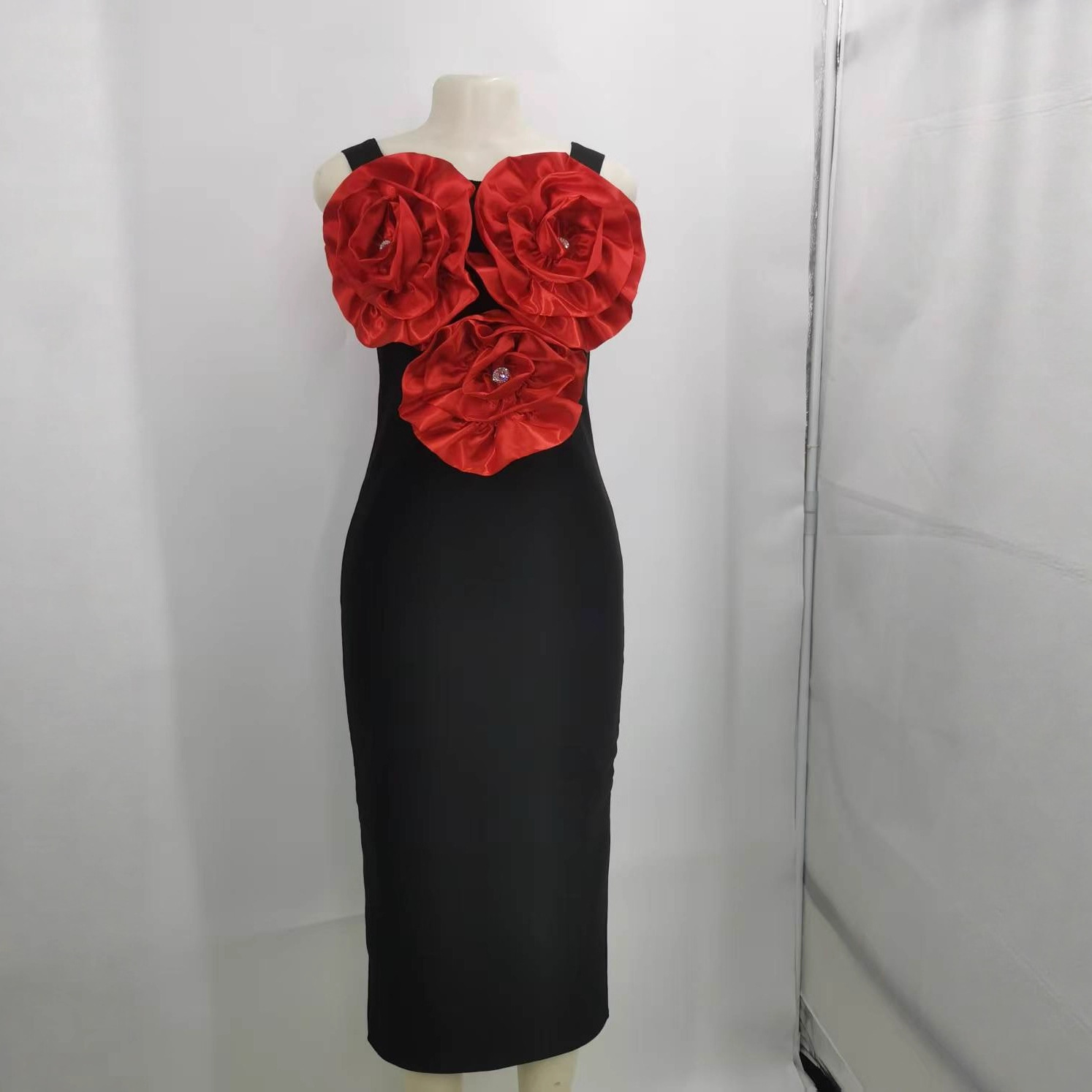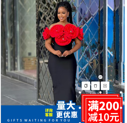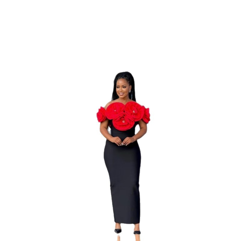 Трансграничные трехмерные цветы, обнаженные плечи, ягодицы, элегантная вечеринка, бинт, платье Bandage Dress