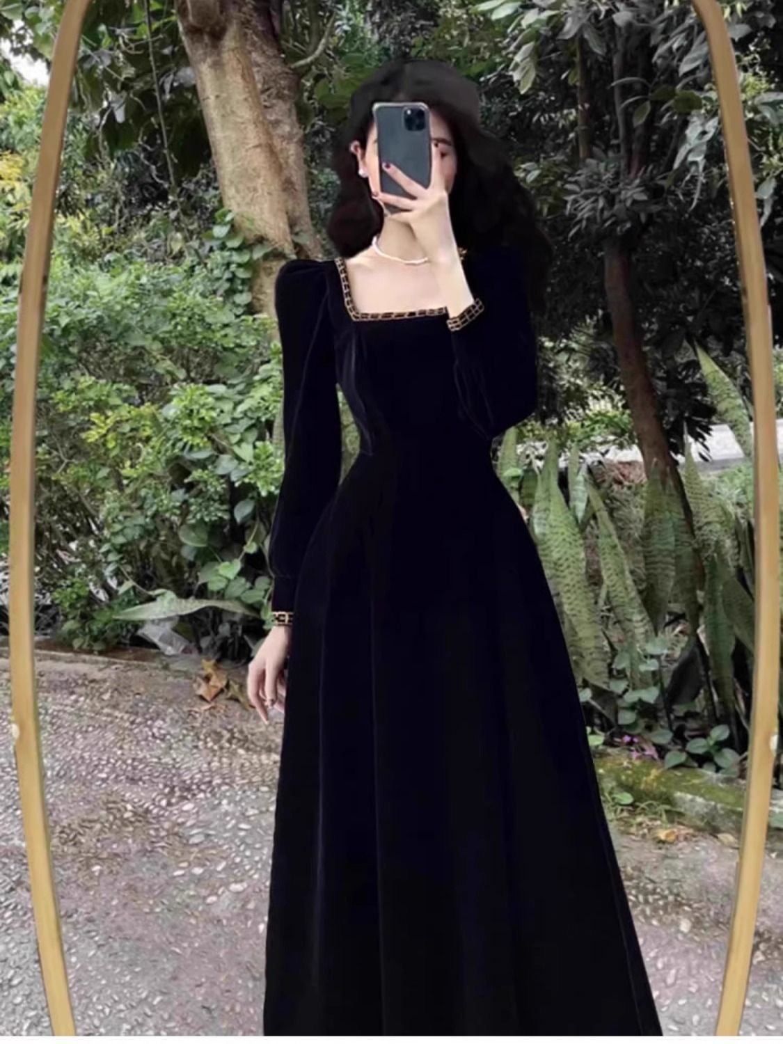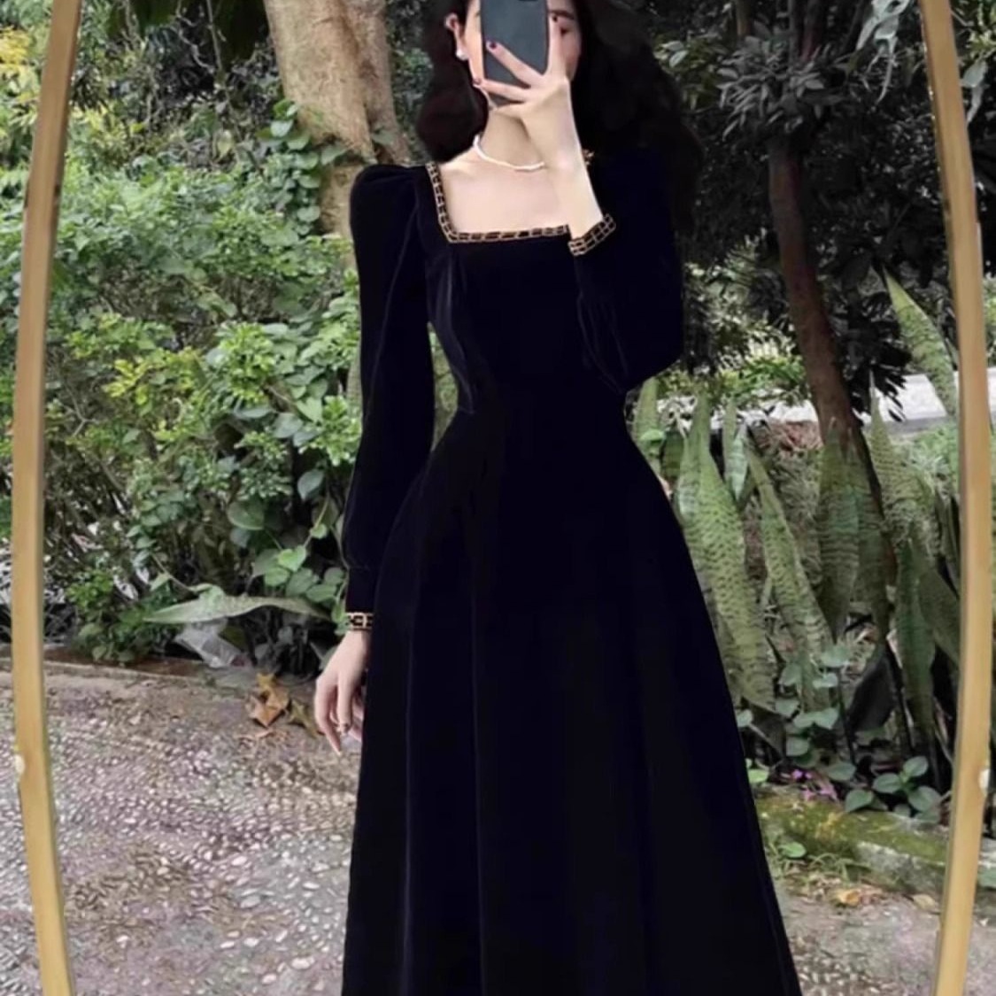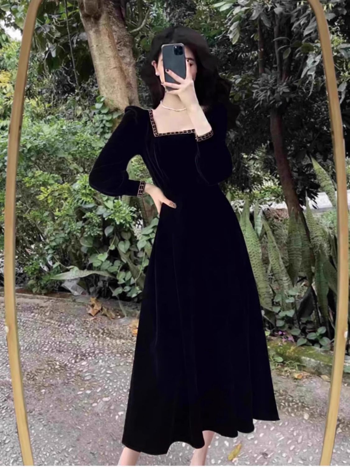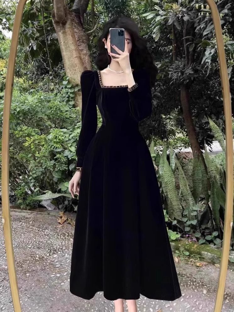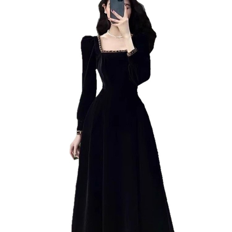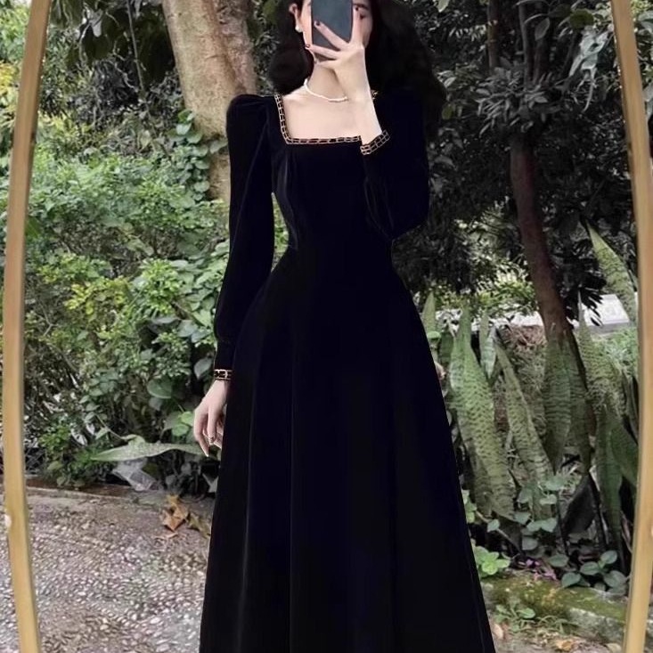 Large size chubby mm style dress with temperament for women in autumn and winter, French retro Hepburn style velvet long dress, weighing 200 pounds