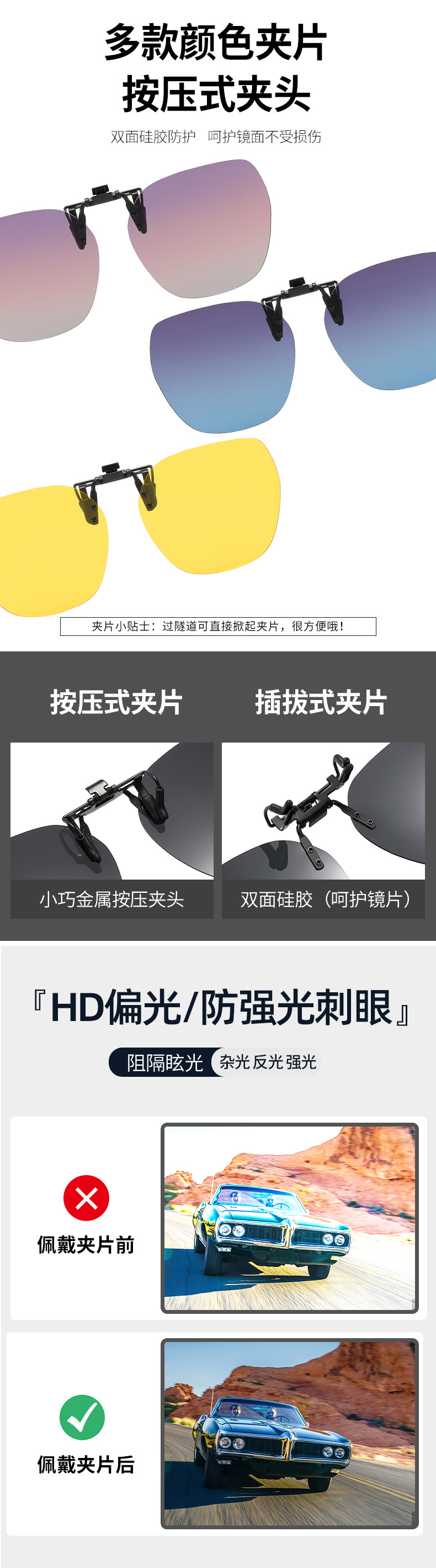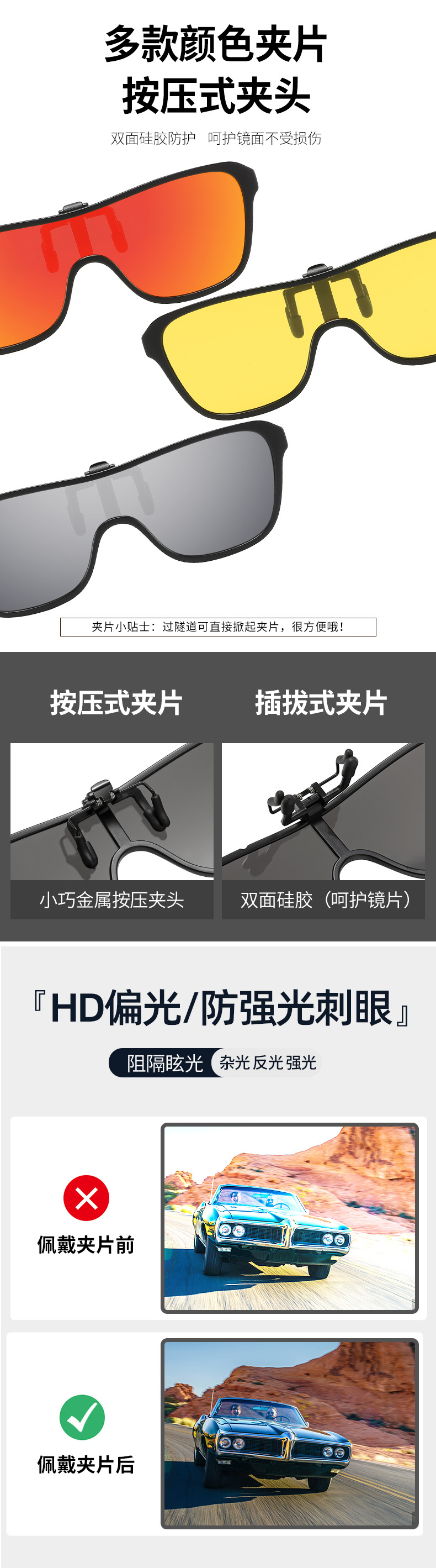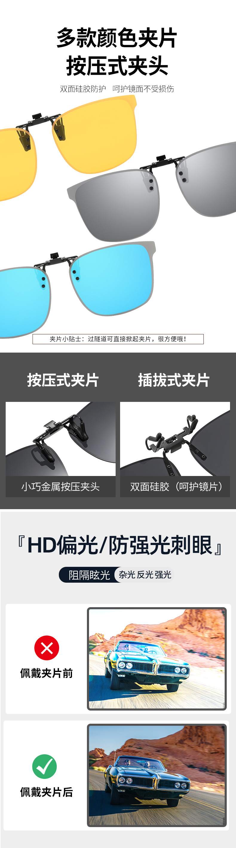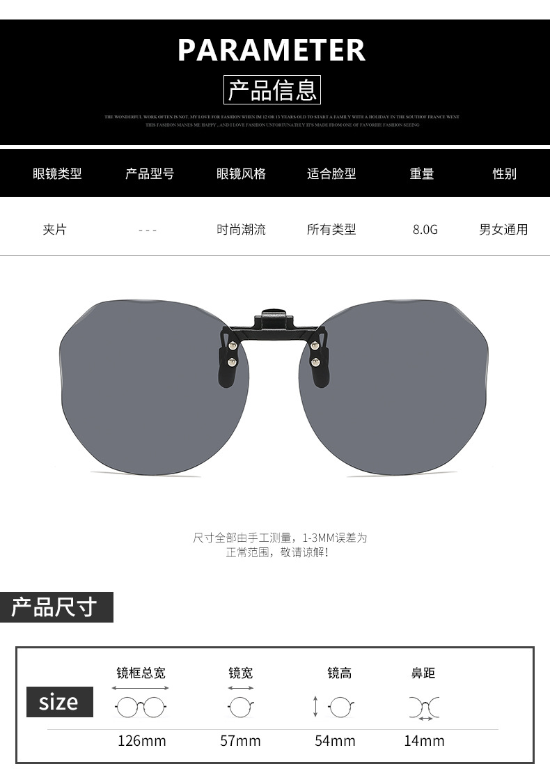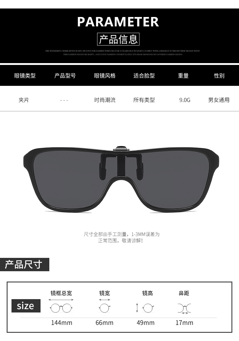 Multiple sunglasses clip up polarized sunglasses for men and women, UV resistant day and night dual-use driving sunglasses