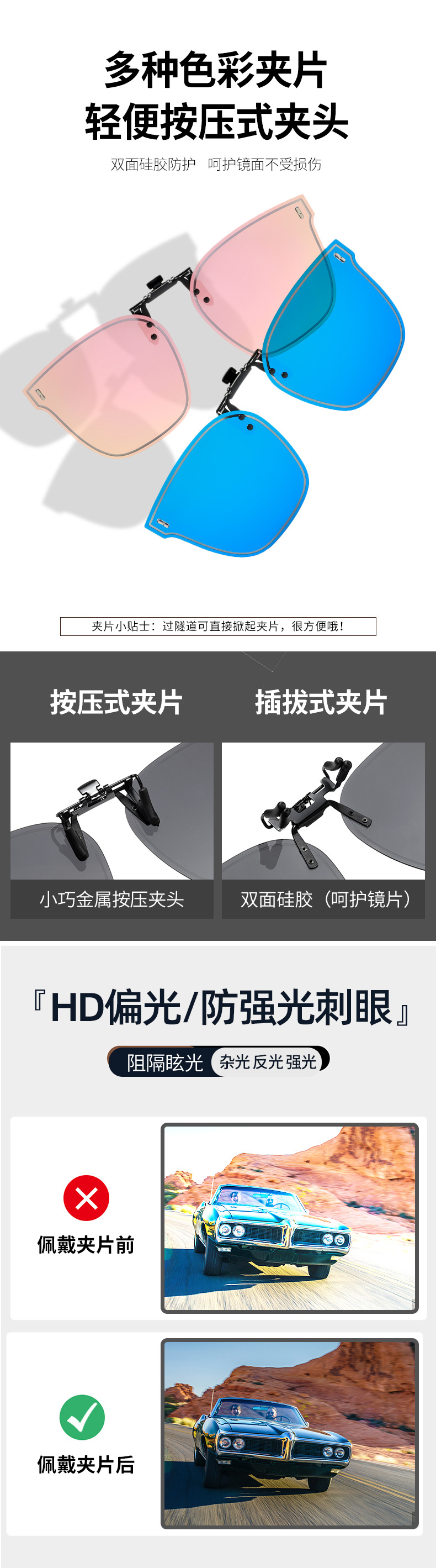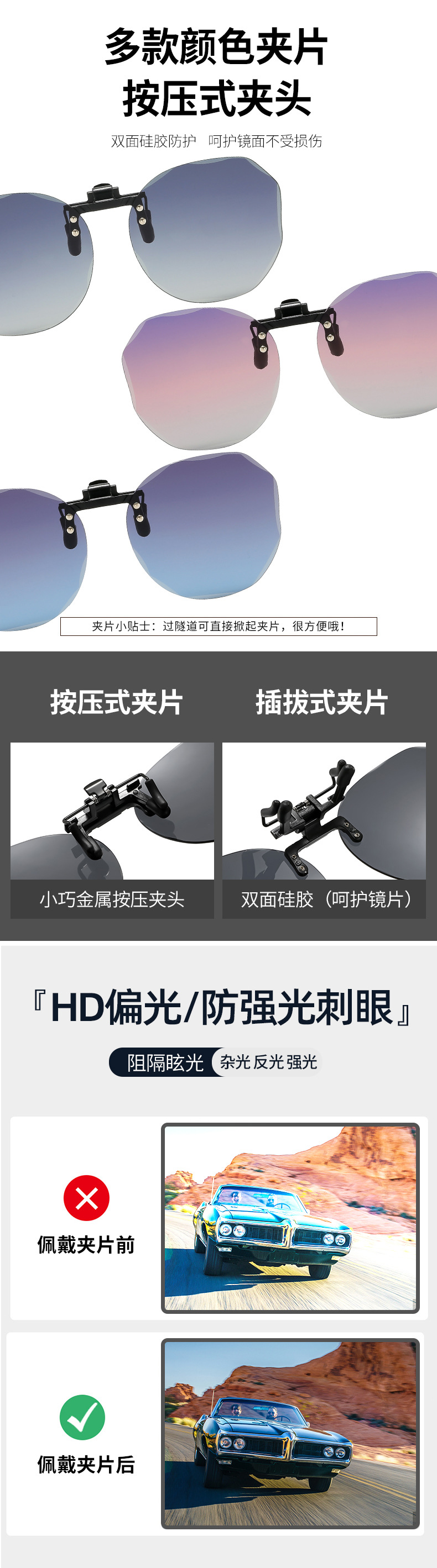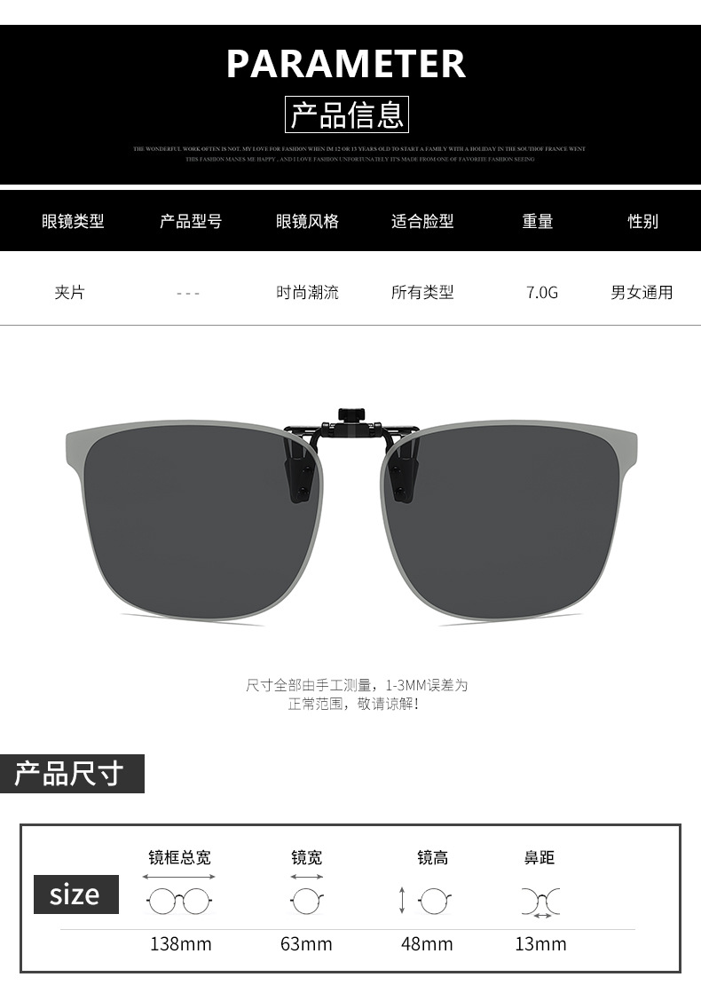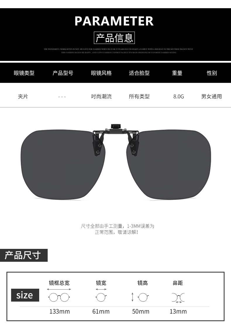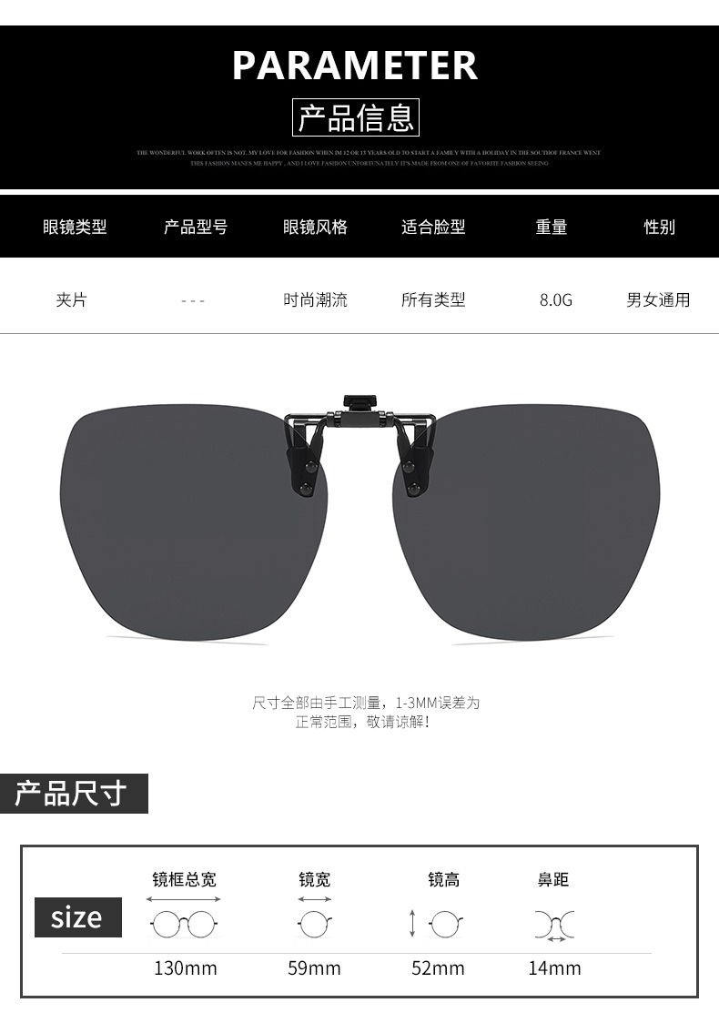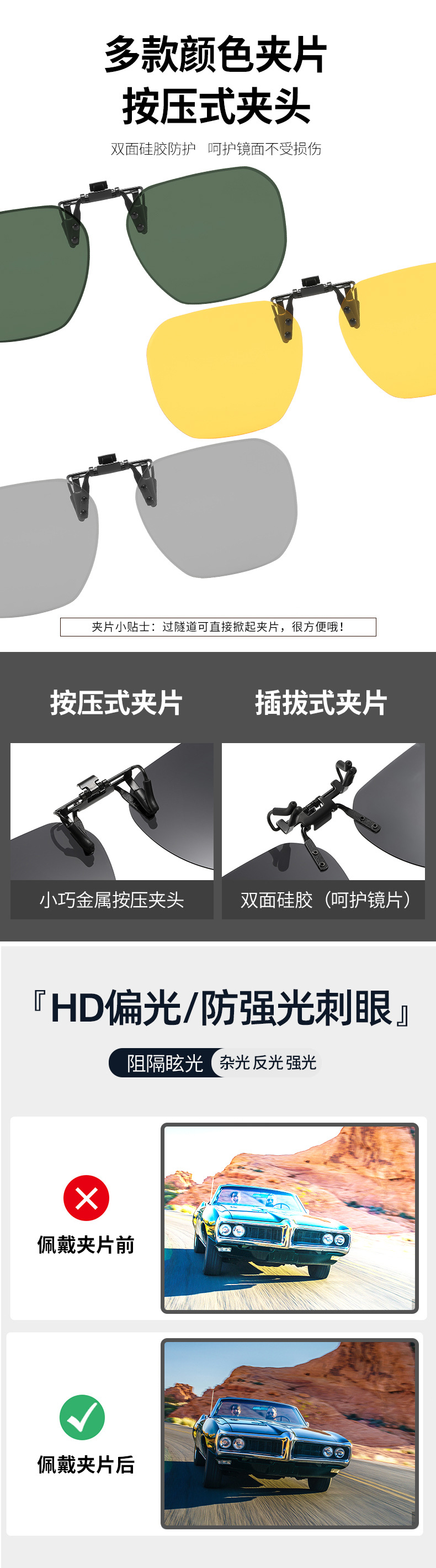 Multiple sunglasses clip up polarized sunglasses for men and women, UV resistant day and night dual-use driving sunglasses