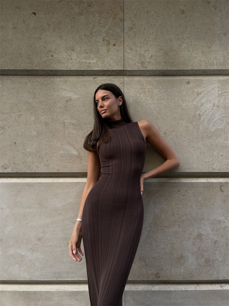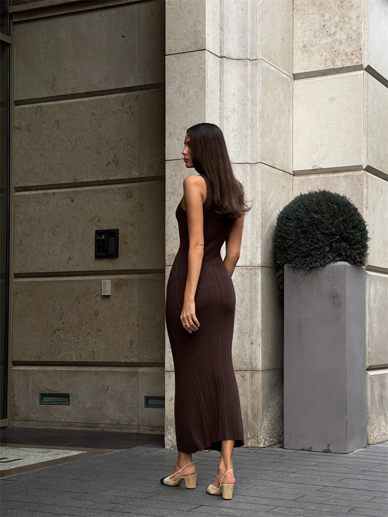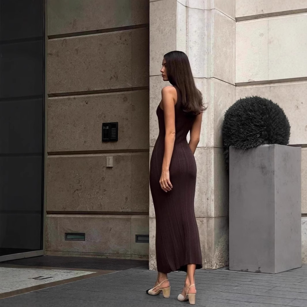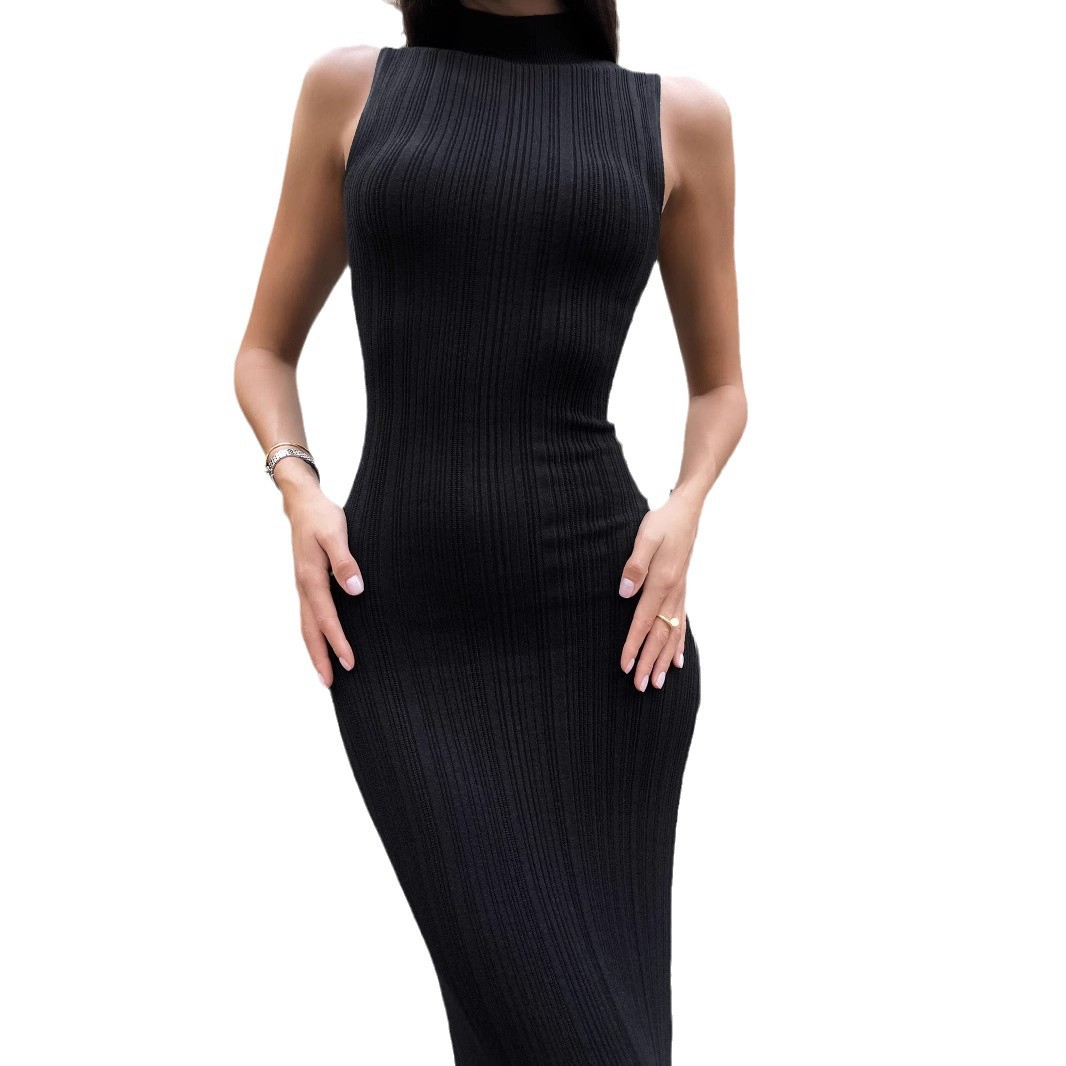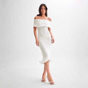 2024 Новая трансграничная женская одежда с высоким воротником трикотажная юбка сексуальная средняя и длинная французская одежда