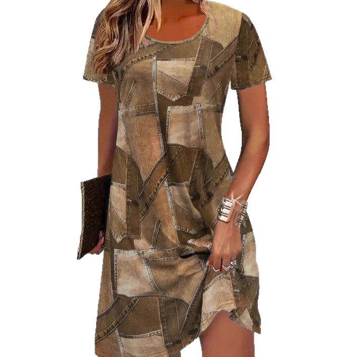 Large size 2025 European and American fashion casual spring and summer digital printed loose dress