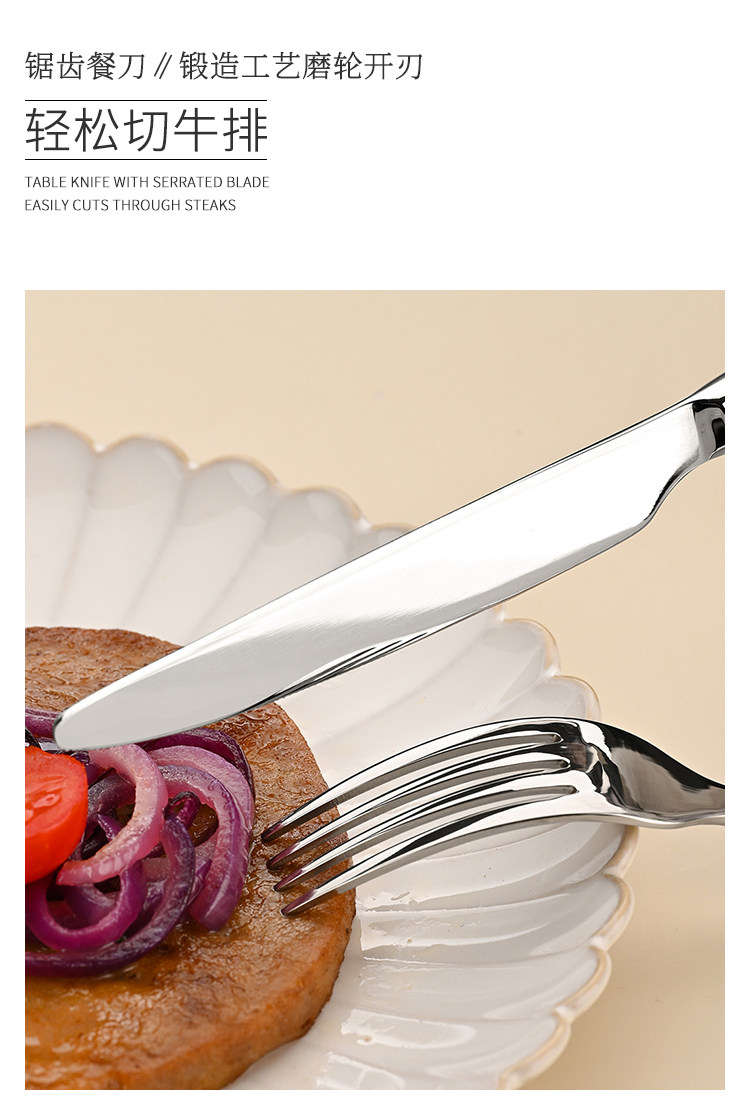 Thickened Western style steak knife, dining knife, fork, spoon, cutlery set, stainless steel household fork, spoon, high-end mirror polishing