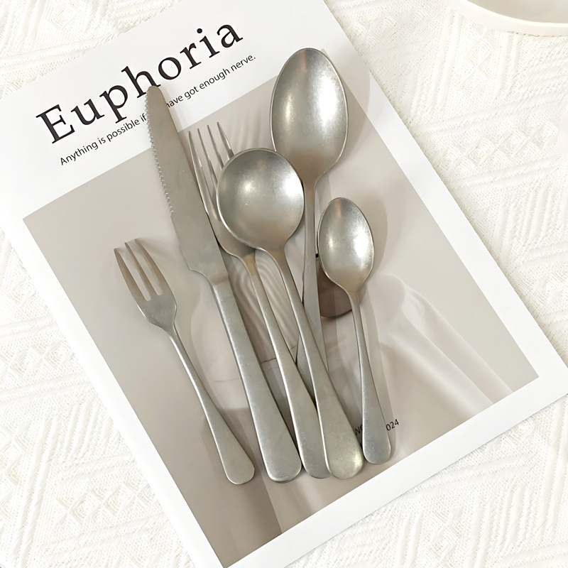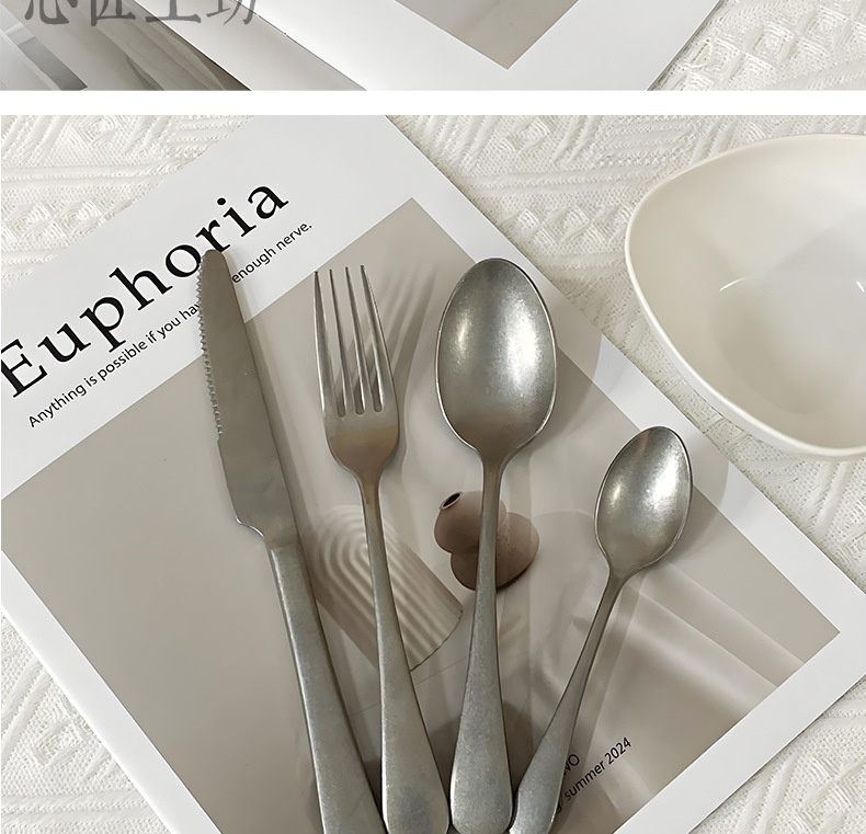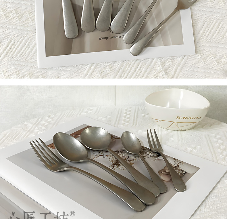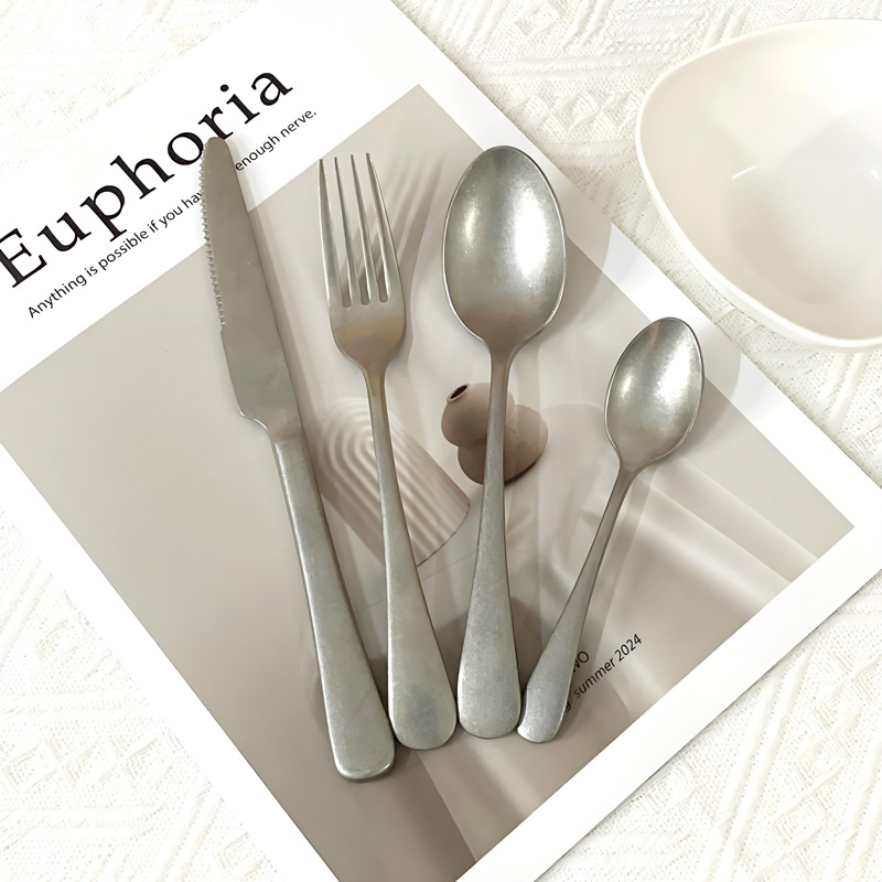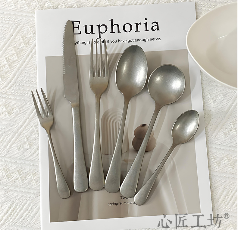 简约磨砂哑光复古刀叉家用304不锈钢西餐餐具酒店餐厅商用刀叉勺