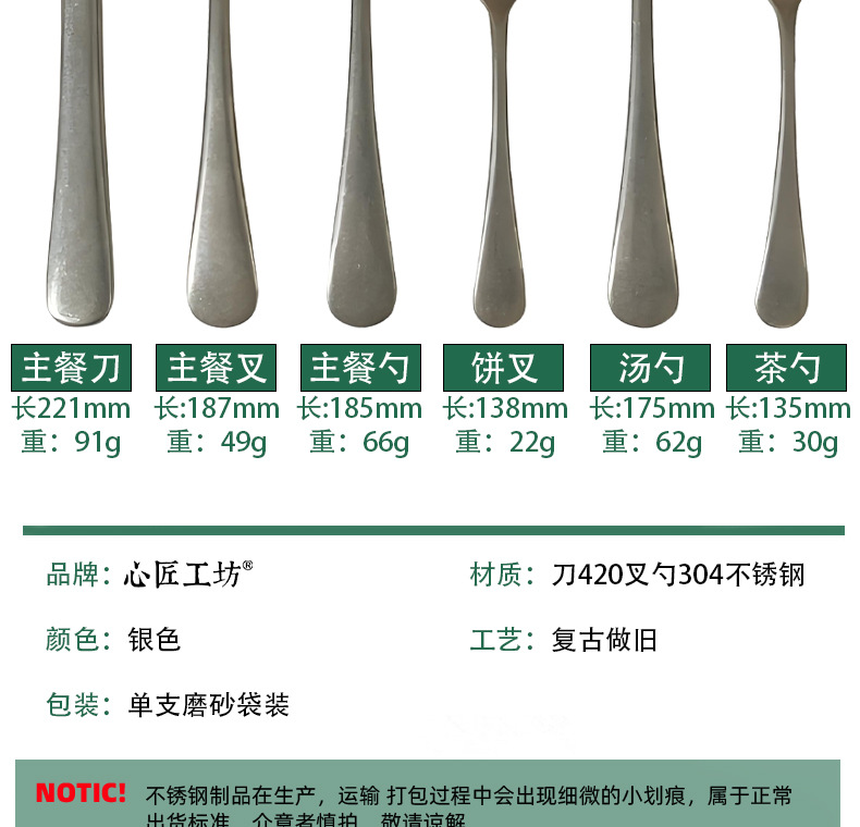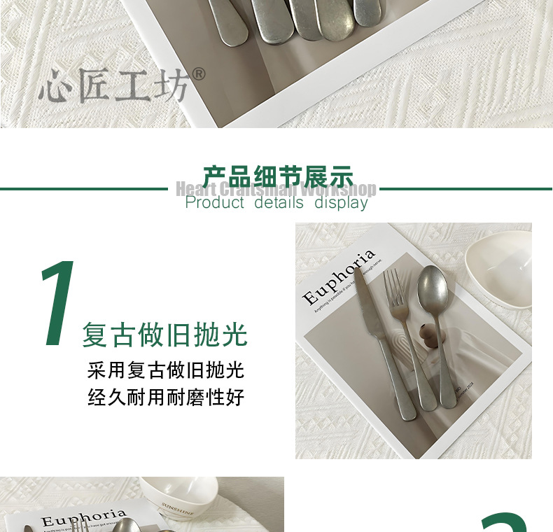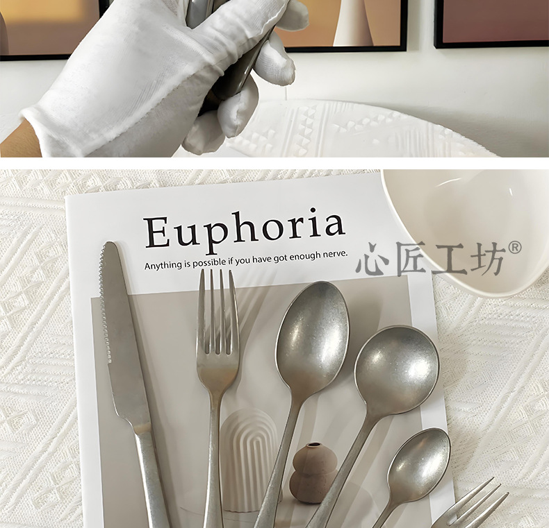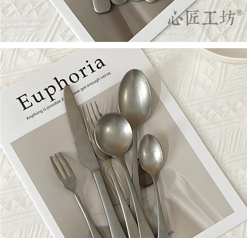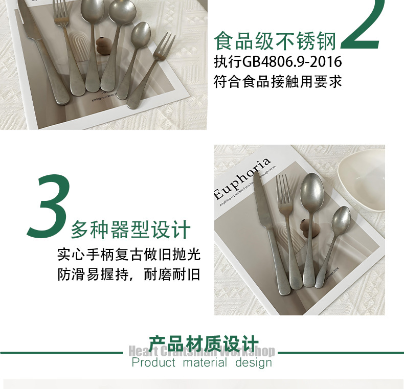 简约磨砂哑光复古刀叉家用304不锈钢西餐餐具酒店餐厅商用刀叉勺